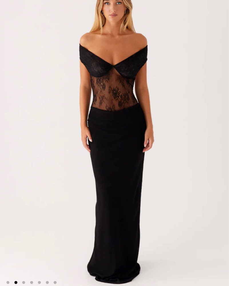 The Elle Maxi Dress is pure elegance with a touch of allure. Featuring an off-shoulder neckline and a semi-sheer bodice, it drapes effortlessly to create a sultry silhouette. Perfect for golden skies and unforgettable nights, this dress is made for those who live for evening glamour.