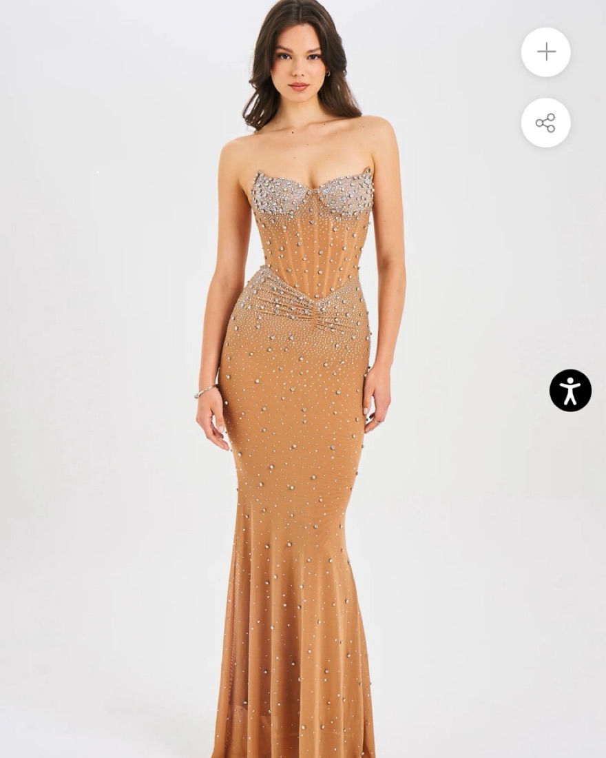 Gorgeous old Hollywood style nude mesh stretchy dress with corset boning and rhinestones. Perfect for any formal occassion. Dress fit me perfectly, 34B/24W/36H