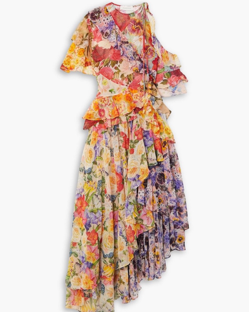 Fun flirty Zimmerman dress! This dress has a fun asymmetrical hem and a shoulder cut out. Creates a very fun flowy shape on the body. I wore this to a garden formal wedding in italy. It was perfect and got so many compliments! There's a nice slip that goes underneath, I'll include that with the dres