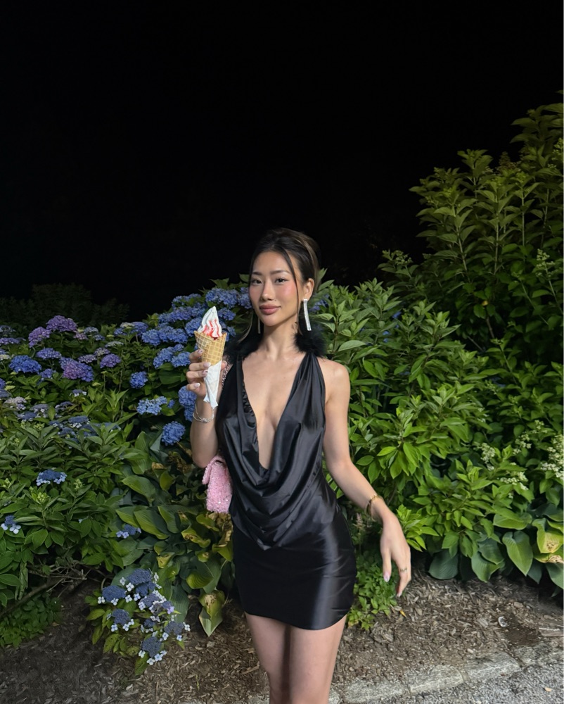 Black cowl neck dress with feather neck