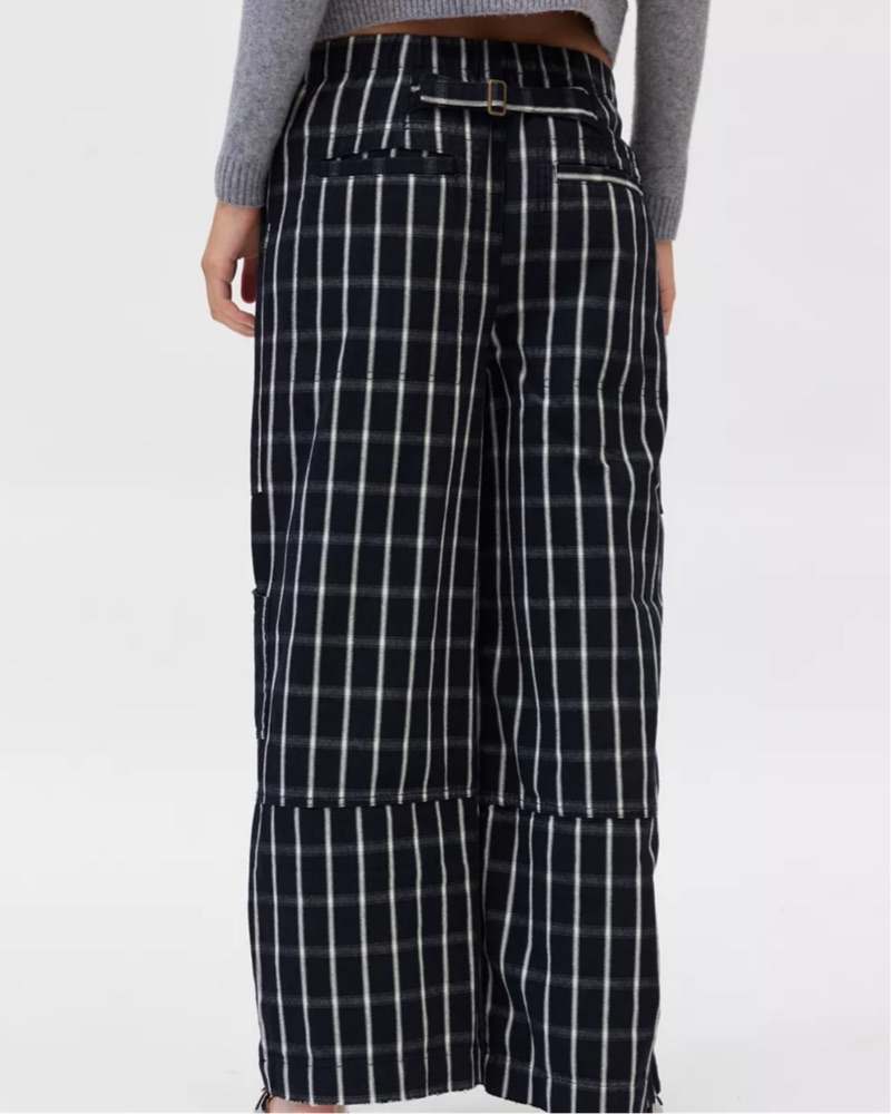 BDG pants crafted from a cotton canvas fabric with an allover gingham print. Cut in an easy fit with a low-rise, drop crotch silhouette for a baggy look and a loose wide-leg. Finished with oversized patch pockets at the sides. Only available at UO.