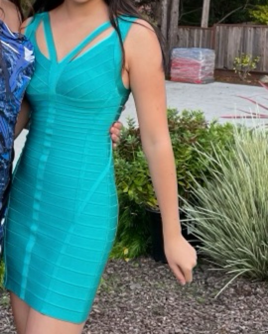 Teal Hervé Léger Mini Dress