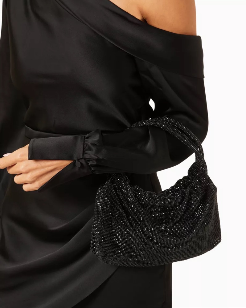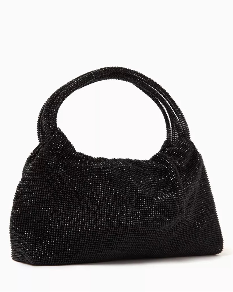 Color: Black Crystal-embellished mesh Carry handles Magnetic closure Satin lining