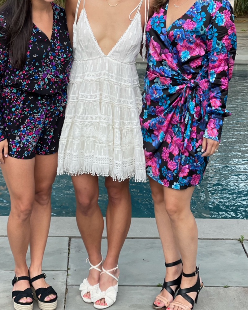 Mini dress wore 1x for beach party / bachlorette in hamptons! The delicate lace detailing and tiered skirt create a romantic, feminine look.