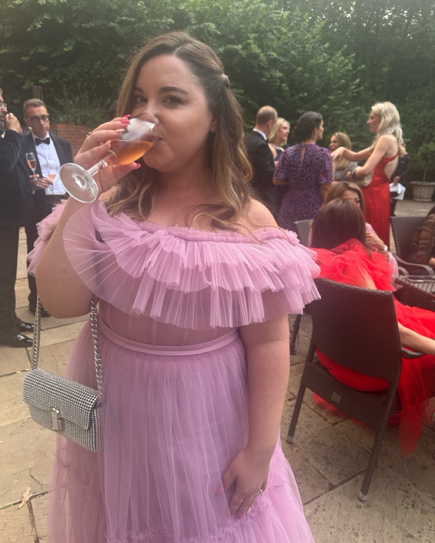 This enchanting BCBG tulle dress exudes a whimsical, fairy-tale-inspired aesthetic. The ruffled off-the-shoulder design and playful accessories create a delightful and feminine look.