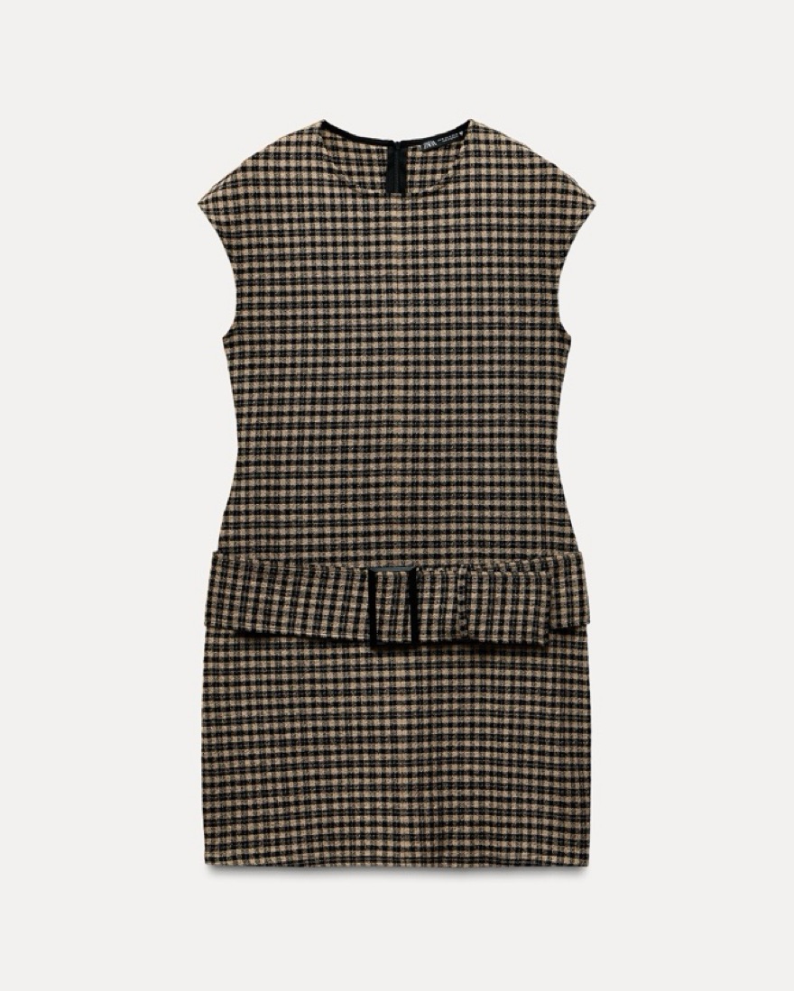 Zara Houndstooth Belted Dress by Zara - Pickle