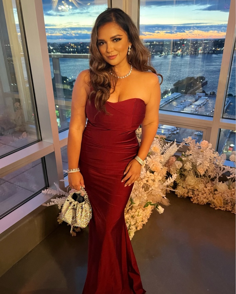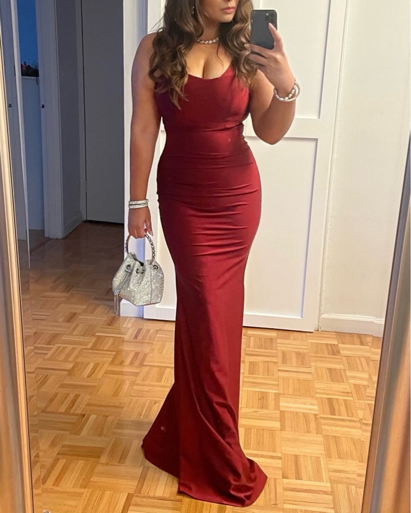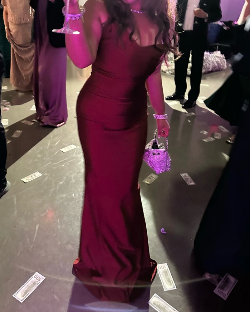 This gorgeous asymmetrical 1 shoulder grown is perfect for a black tie affair. Color is regal and material has lots of stretch.