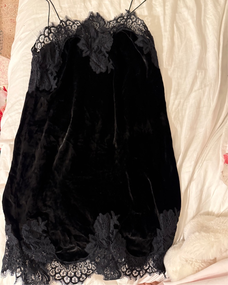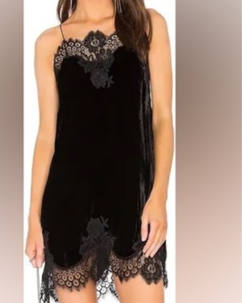 The dress is super cute velvet snd lace style. No zipper, no adjustable straps. The size tag is not on the dress but it fits like a xs-s