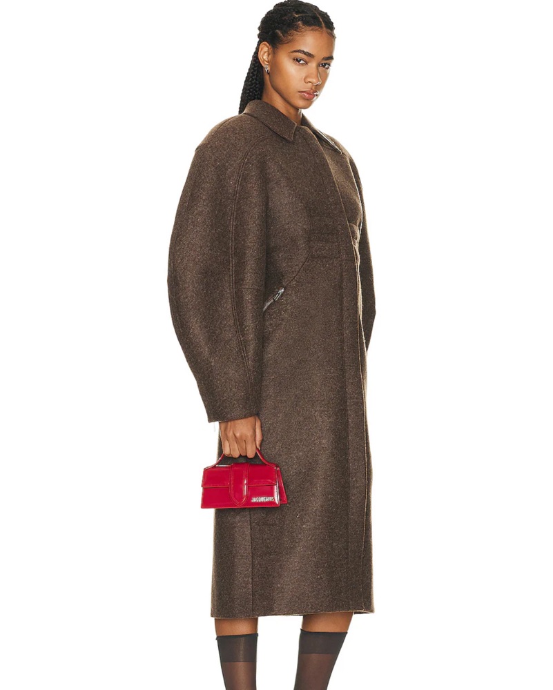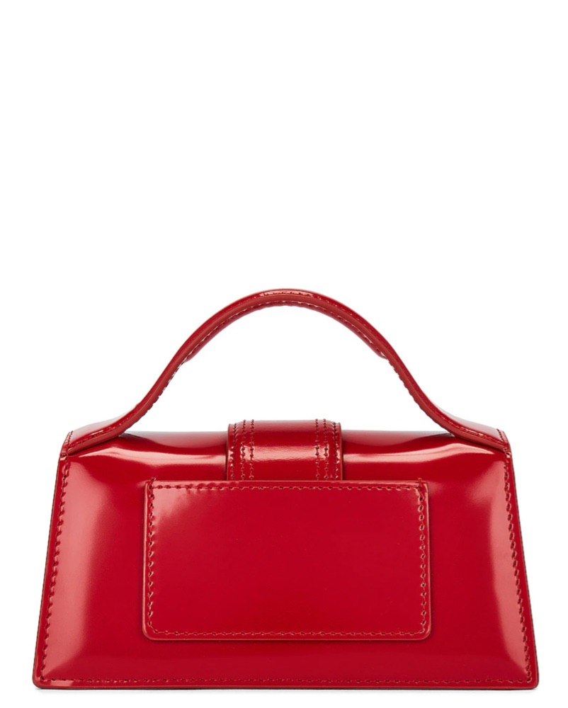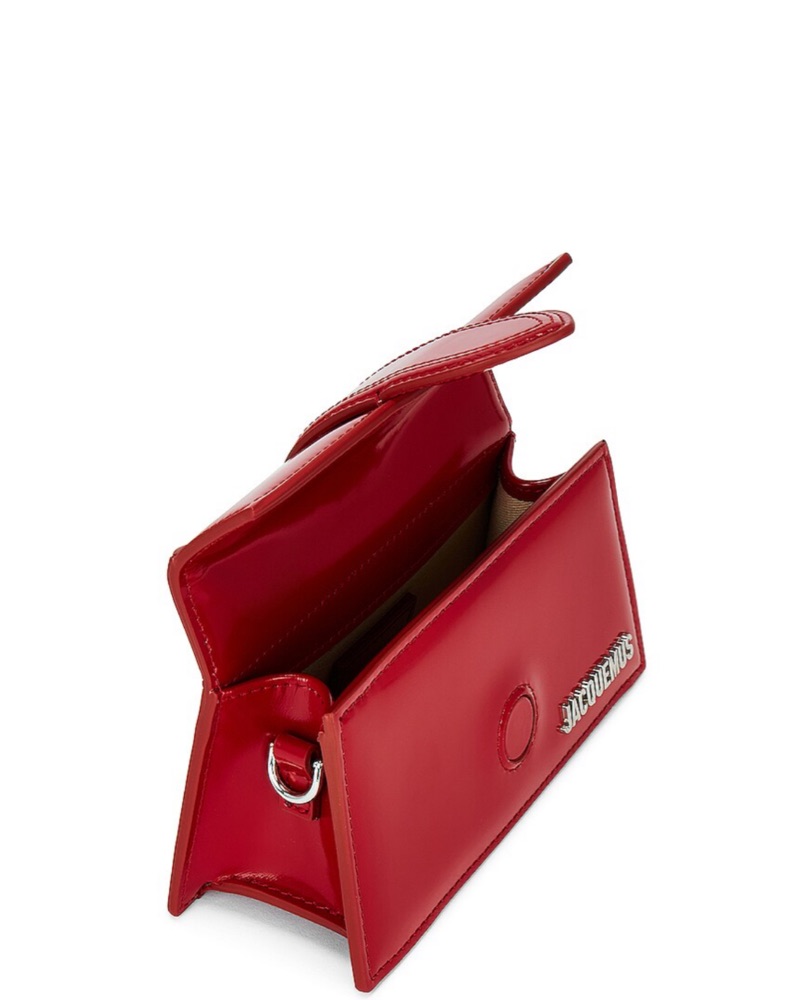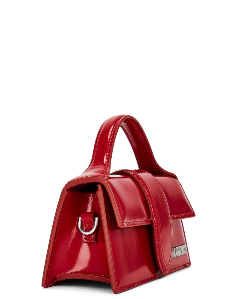 This bold and chic Jacquemus mini bag is the perfect accessory to elevate any outfit. Crafted from high-quality patent leather, it features a sleek and structured silhouette with a unique curved handle design.