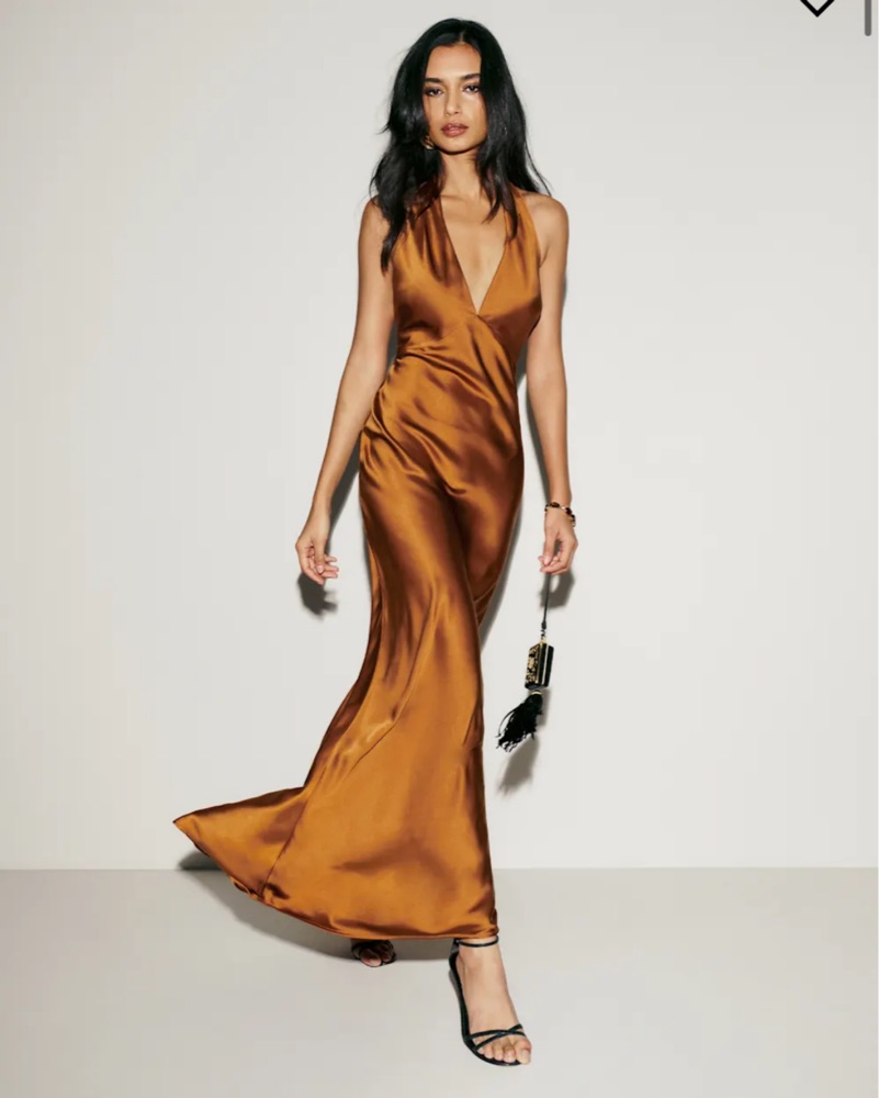 Reformation long silk halter dress. Burnt orange/rust color