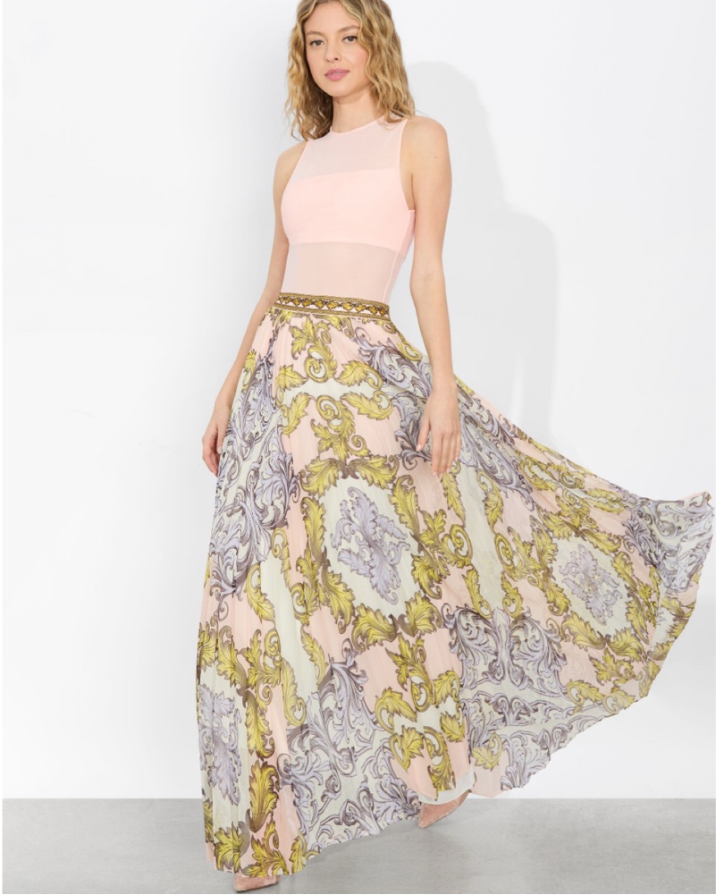This stunning maxi skirt is perfect for a special occasion or event. The vibrant floral print and flowing silhouette create a romantic, feminine look. Only worn once for Paris vacation!