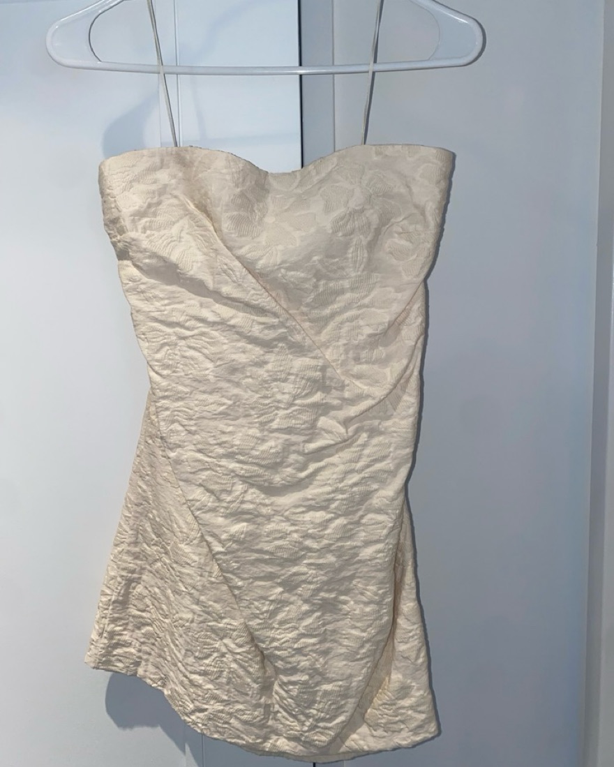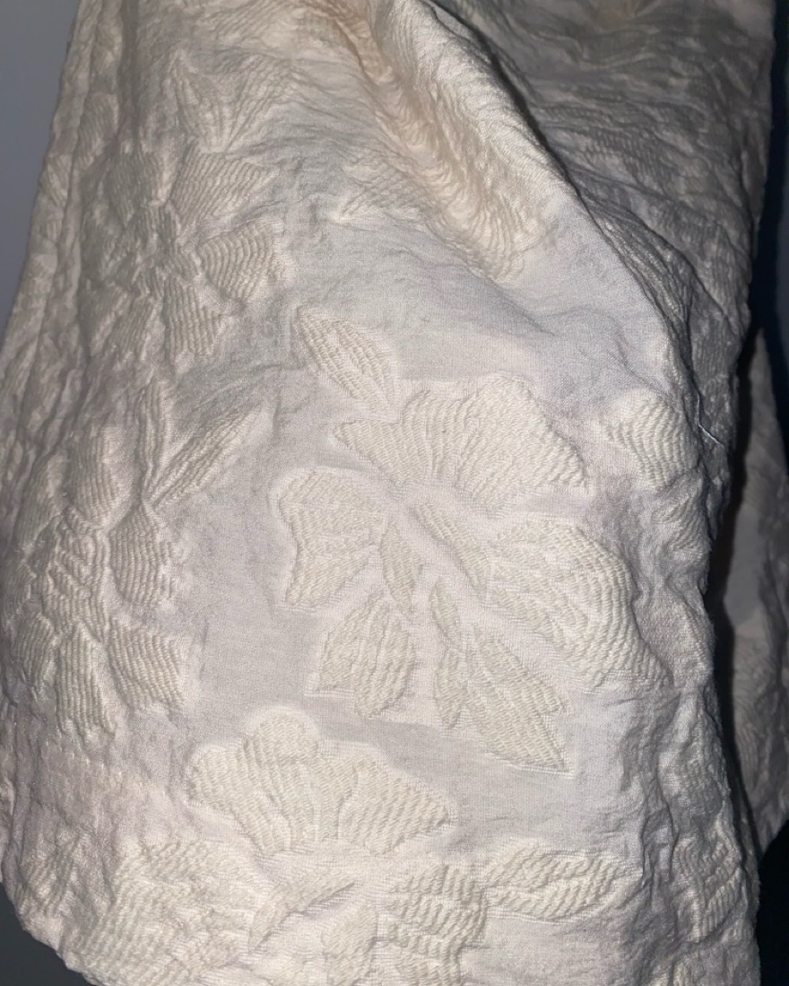 Although this dress needs a steam, I wore it to the after party of my wedding ( so it’s only been worn once). This dress was super comfortable to wear and was the perfect after party dress for my wedding. I took a closer picture of the flowered pattern.