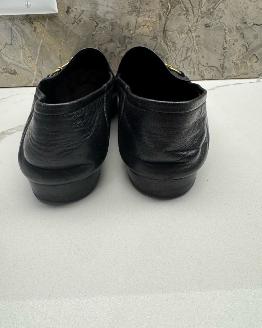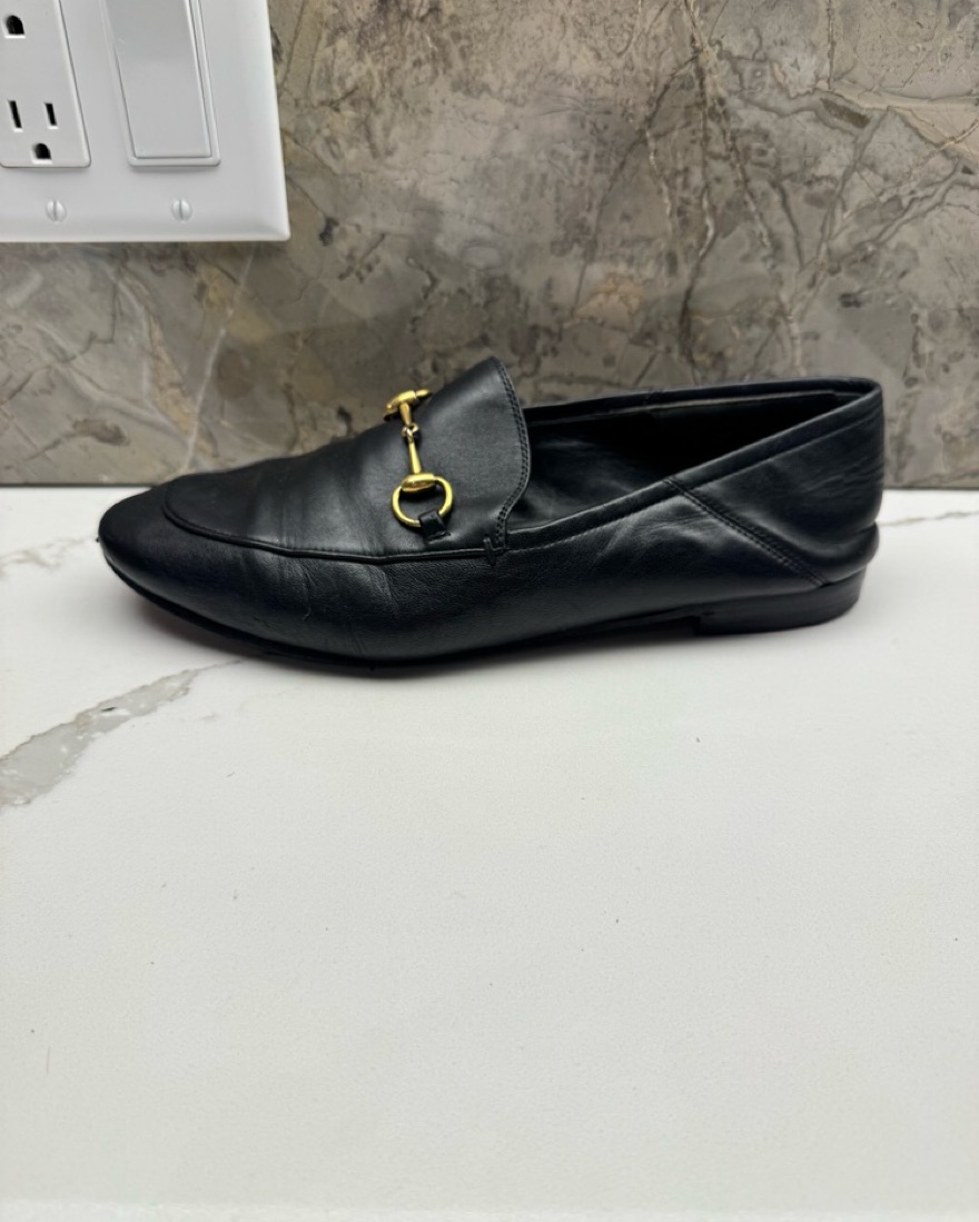 Authentic Gucci Brixton Horsebit black leather loafers. Size 39. Made in Italy. Flat with 0.4” heel.