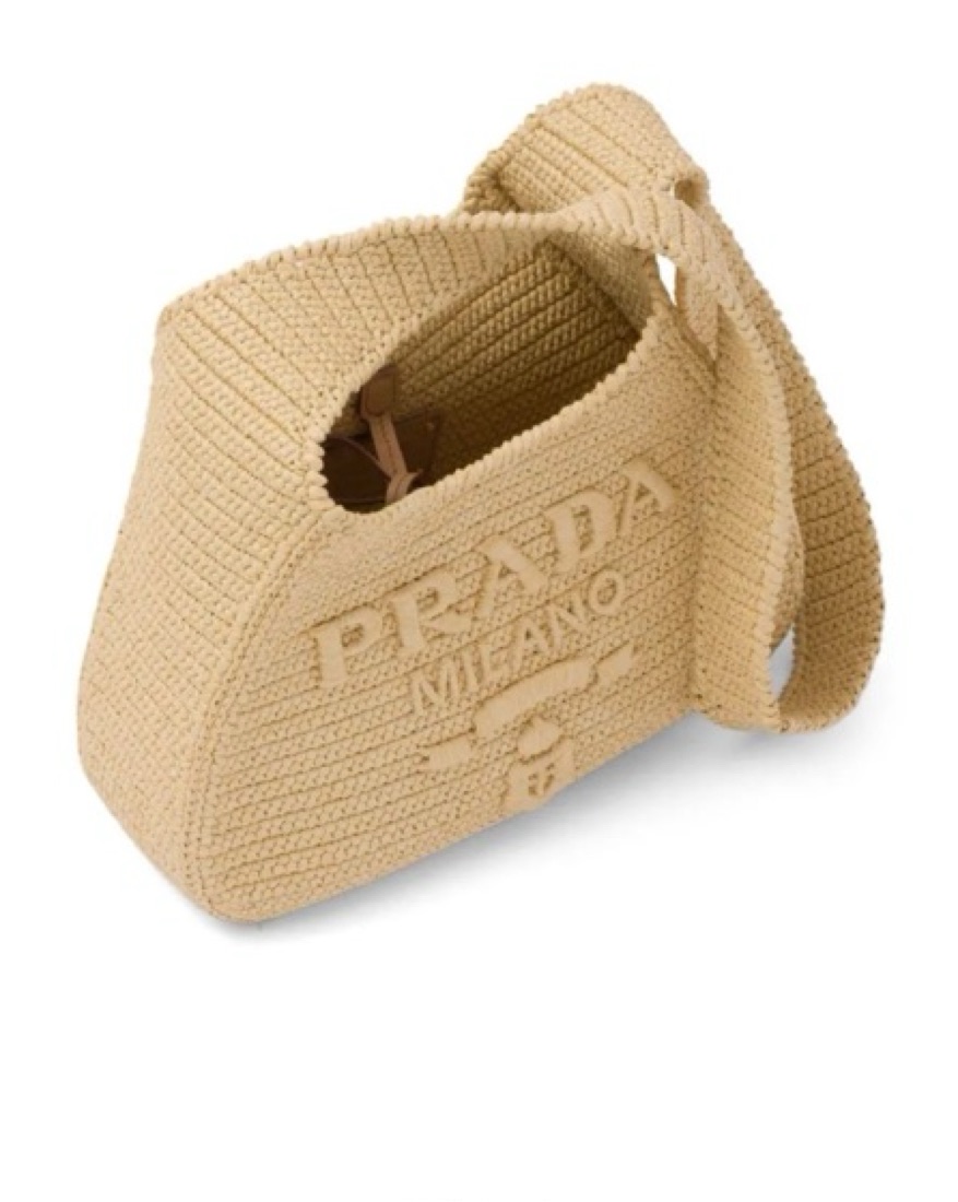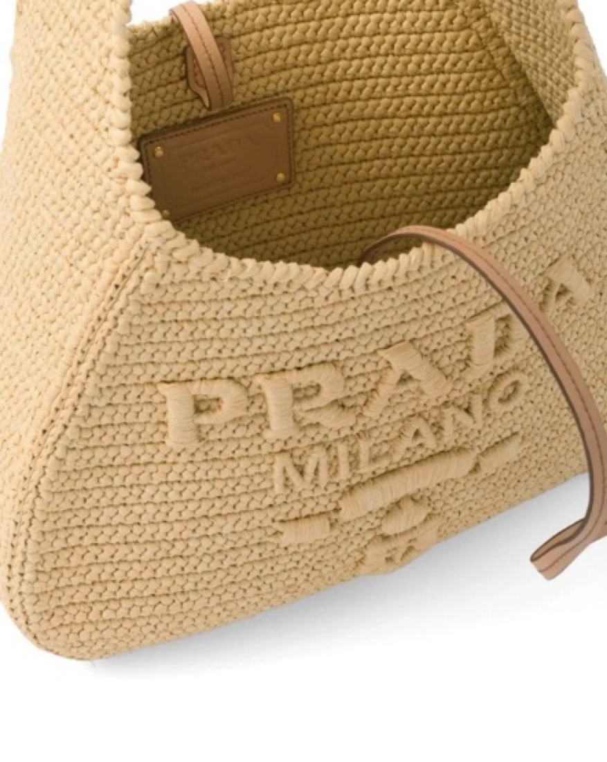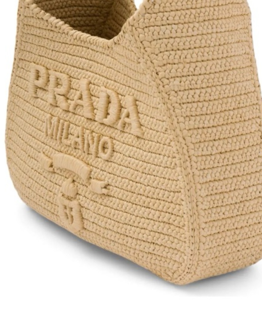 Prada logo-embossed Raffia Shoulder Bag by Prada - Pickle