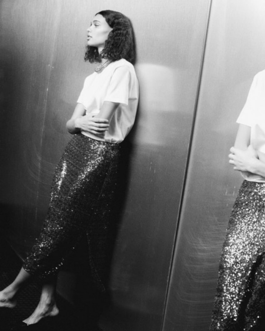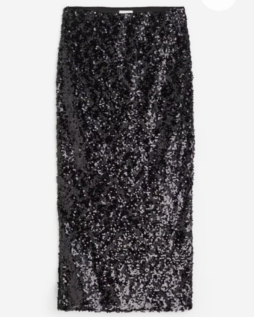 This eye-catching sequin midi skirt is perfect for a night out or a special occasion. The shimmering sequins add a touch of glamour to any outfit. The bottom half of the skirt is sheer but the top part has a lining to cover your butt :)