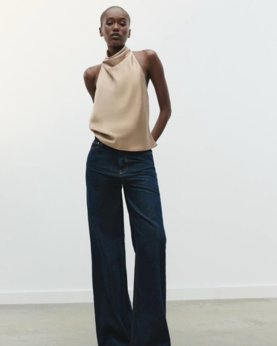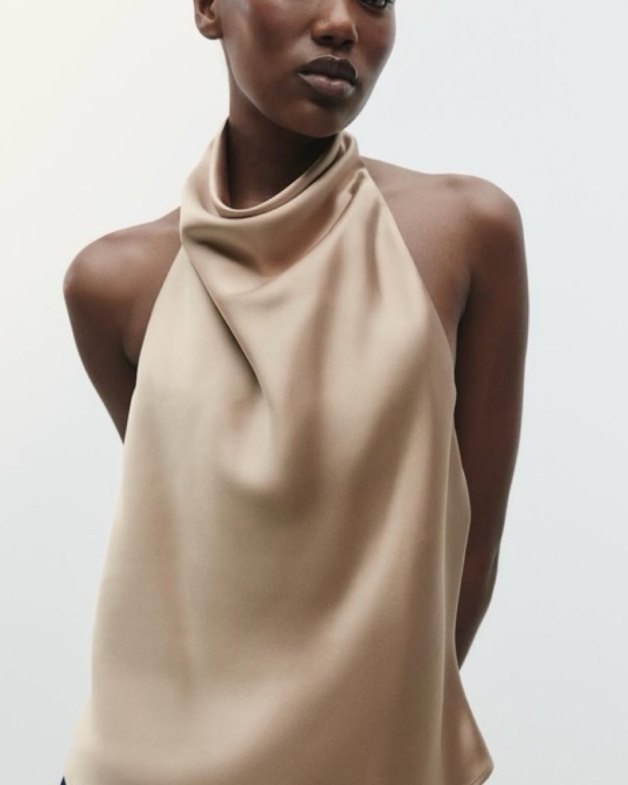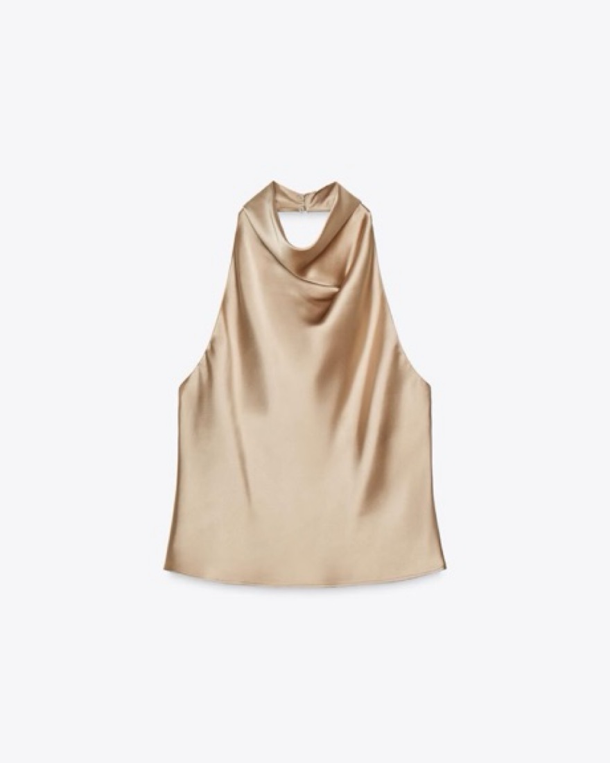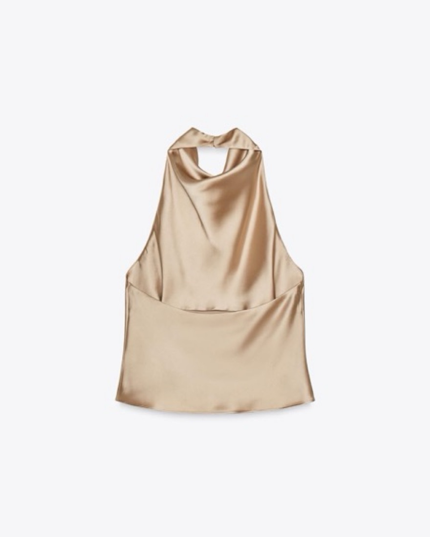Zara Satin Effect Halter Top Beige