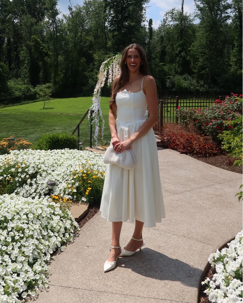 Revolve Antonella midi dress from Camila COELHO. Worn once for my second bridal shower and dry cleaned! Such a great quality dress and was perfect for twirl moments. Would be lovely for a shower or engagement photoshoot session!