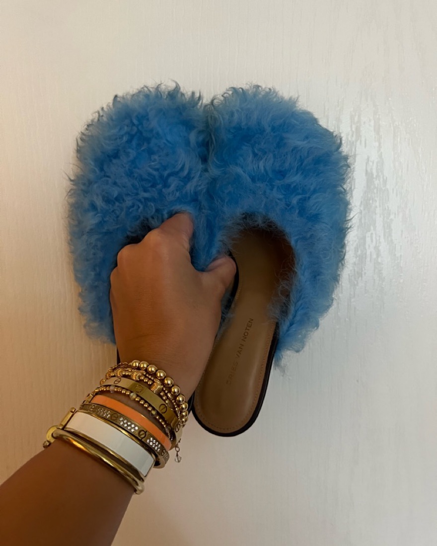 Blue Fur Mule by Dries Van Noten - Pickle