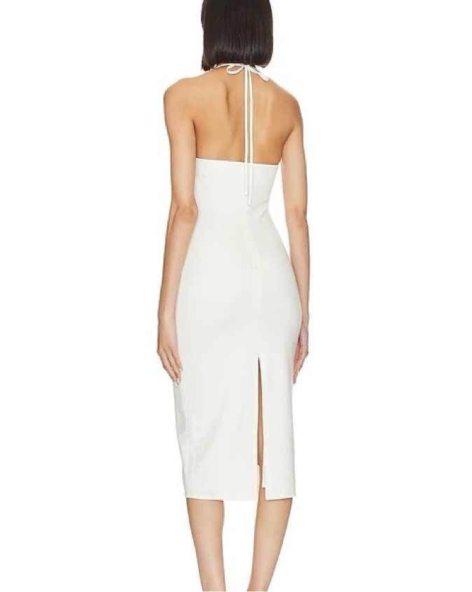 Hidden back zipper and halterneck tie closure