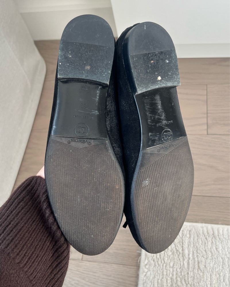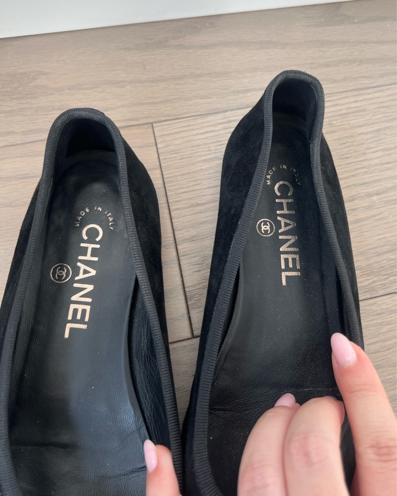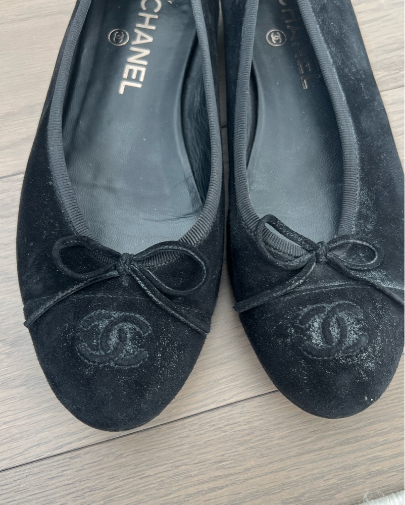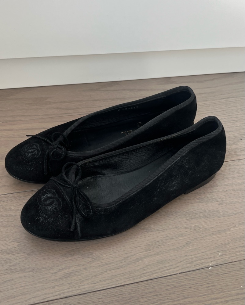 Chanel Black Suede Ballerina Flats by Chanel - Pickle