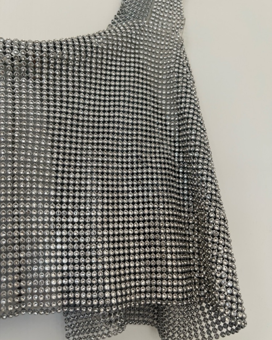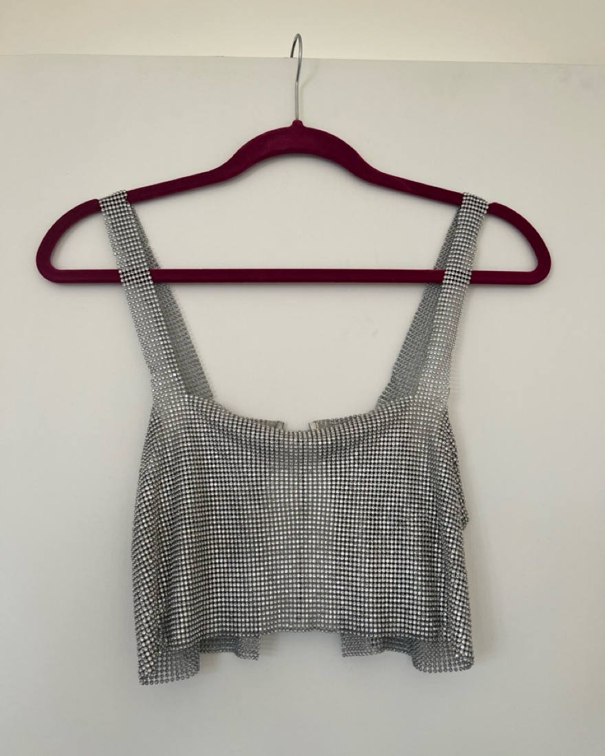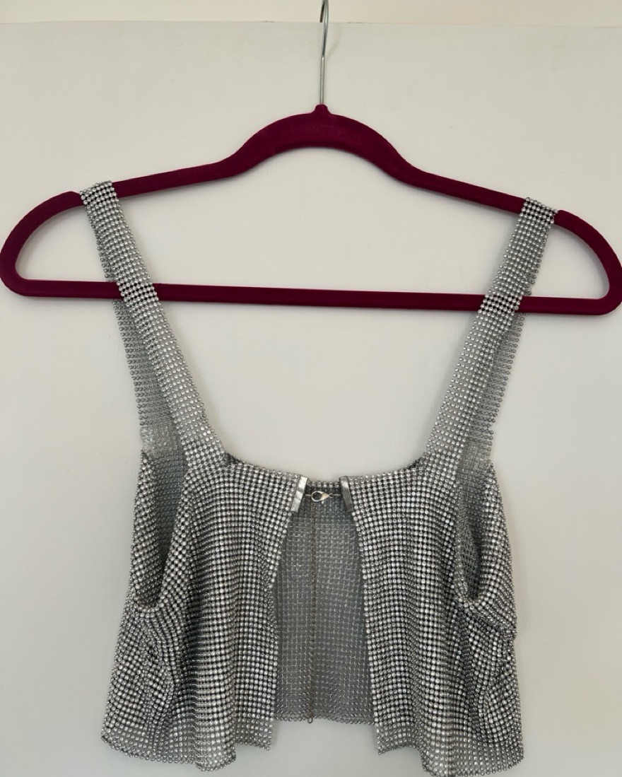This top is a perfect for festivals and parties! It’s pretty cropped (I’m 5’1”, have small boobs and a short torso and you can see it’s pretty cropped on me, so it might be more like a bralette on people with longer torsos). There are also a handful of rhinestones missing (see closeup photos).
