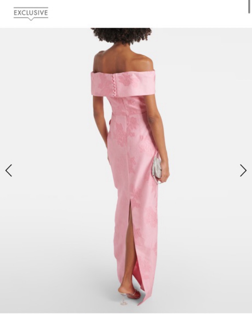 This stunning off-the-shoulder maxi dress in a vibrant pink hue is perfect for a formal event or special occasion. The voluminous silhouette and eye-catching color create a truly glamorous look. Fits more like an 8!