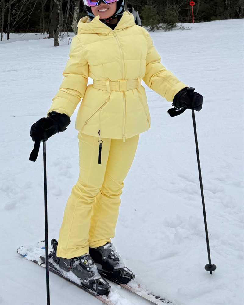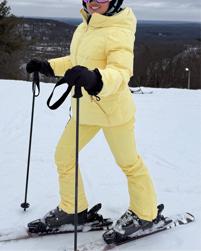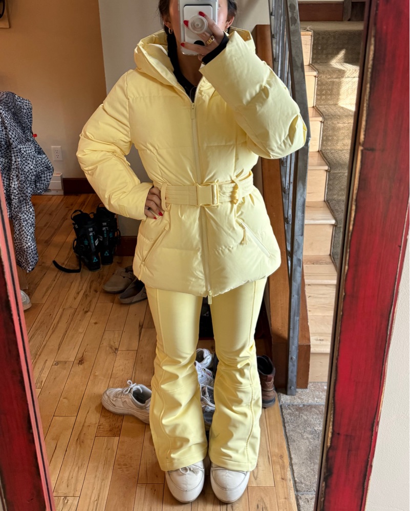 This is for a set! Halfdays Hedy Belted Puffer in XS and Isabel Soft Shell Bib in XS SHORT. The cutest butter yellow and makes you stand out when skiing (cute and safe!!!). Puffer retails $575 and bib retails for $375 - I also have base layers listed on my page to wear under this!