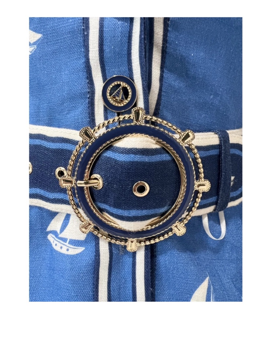 Shirt dress with sailboat prints. The buttons and belt feature nice coastal details. AU size 0 / US size 2-4. My waist measurement is 25-26”
