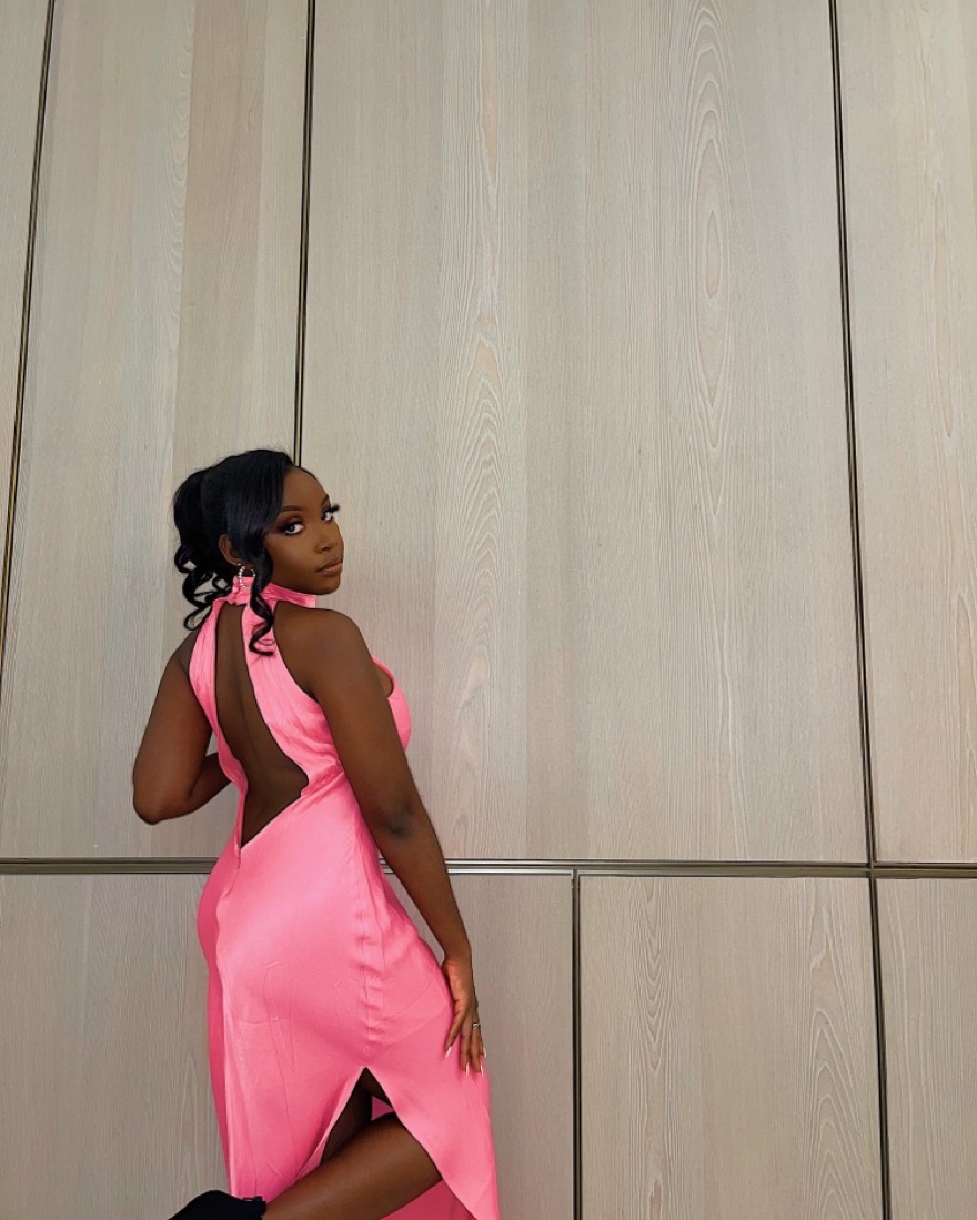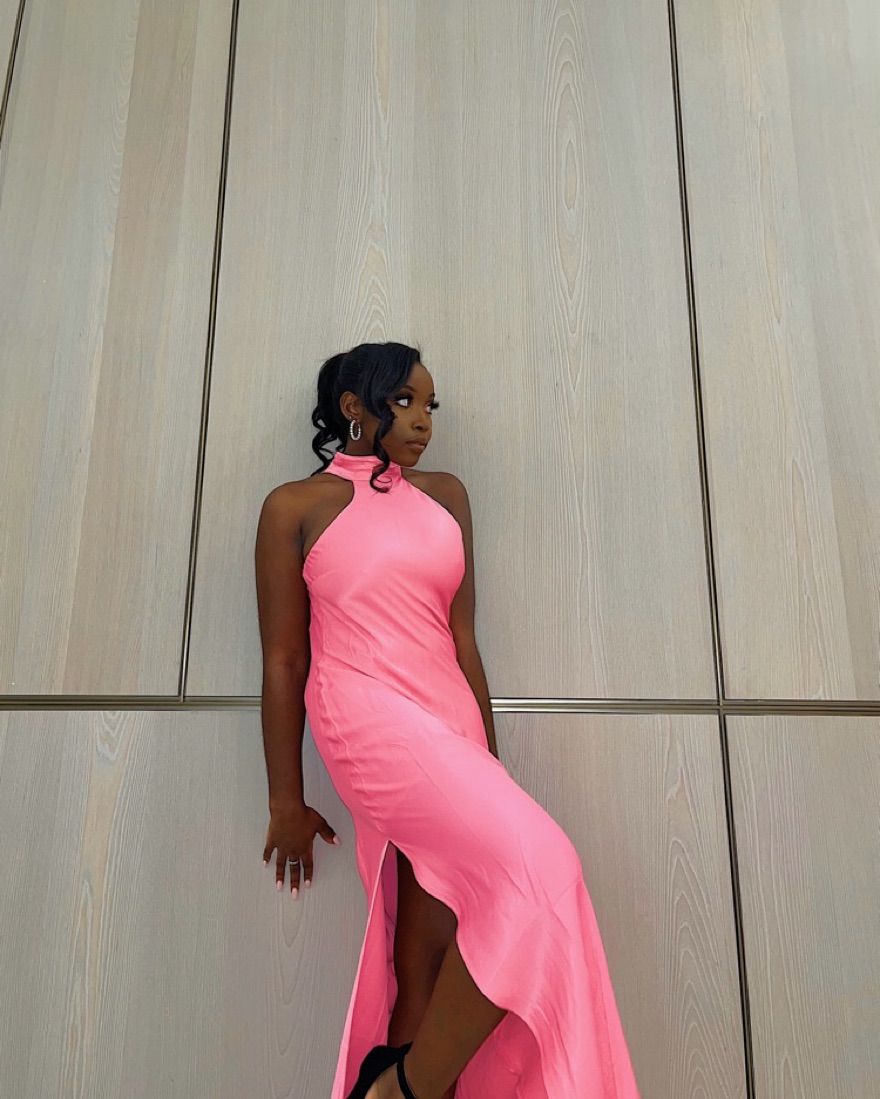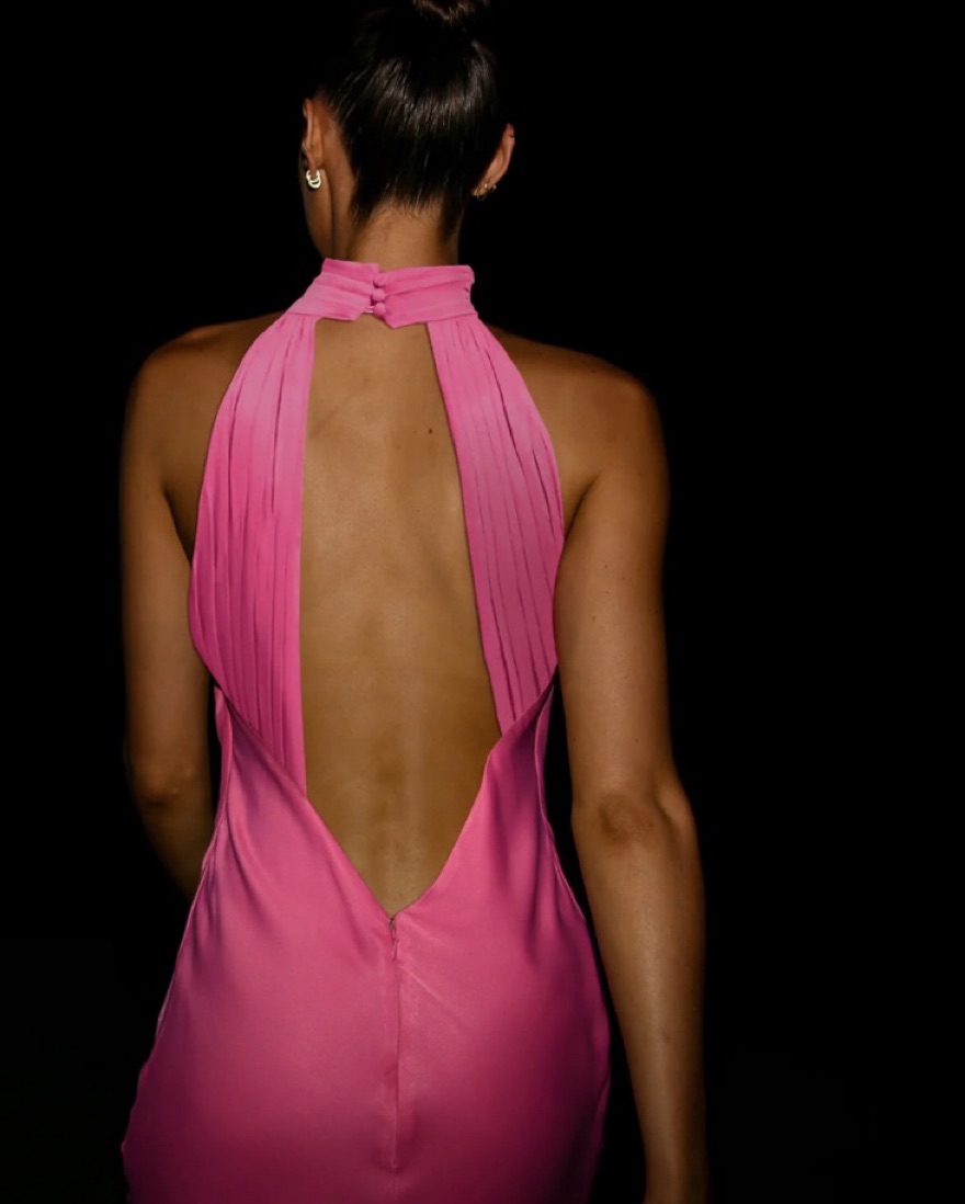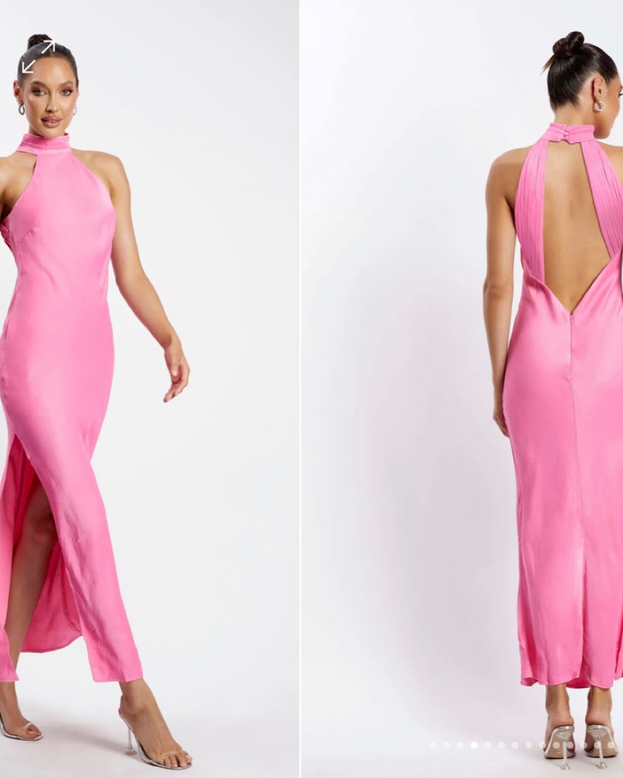 CLAIRE Satin Drape Back Maxi Dress with Split - Pink