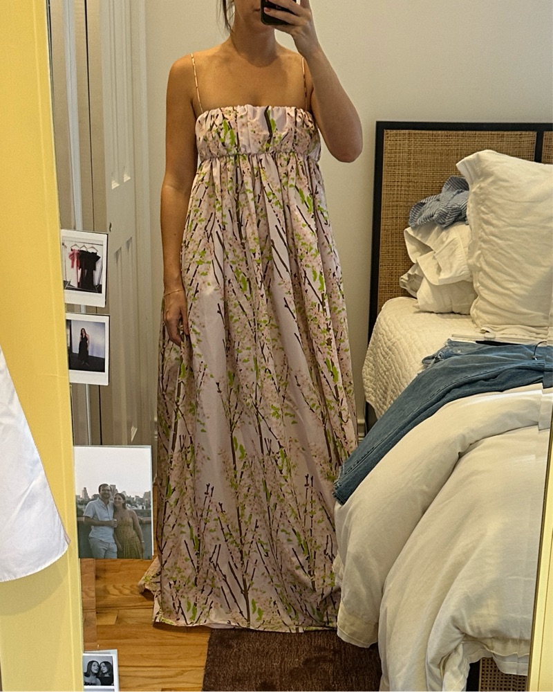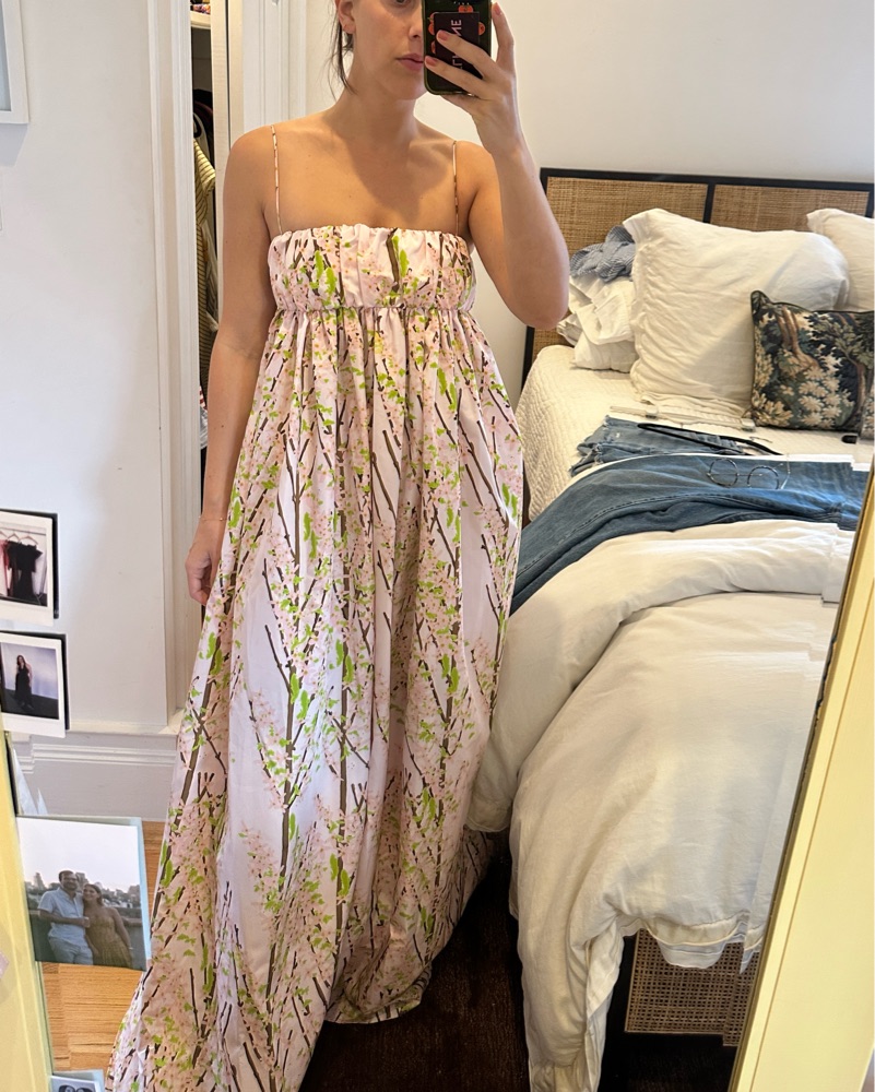 FR Size 38 birgit maxi dress in printed taffeta - never worn. NWT. I’m 5’6 and not wearing shoes in the picture