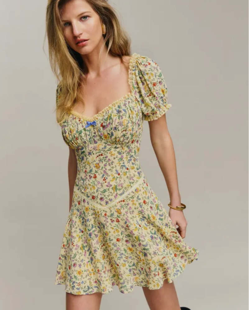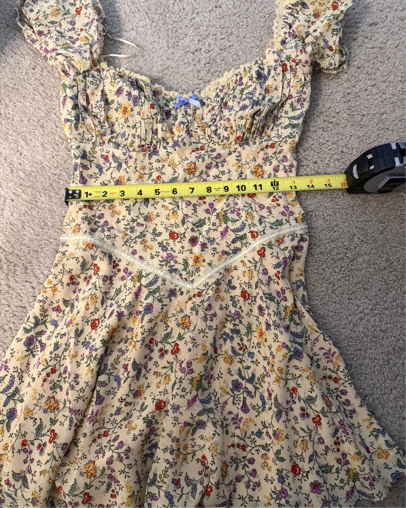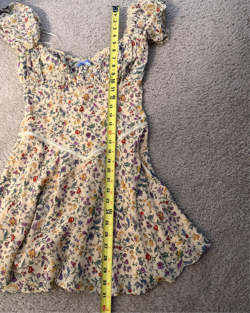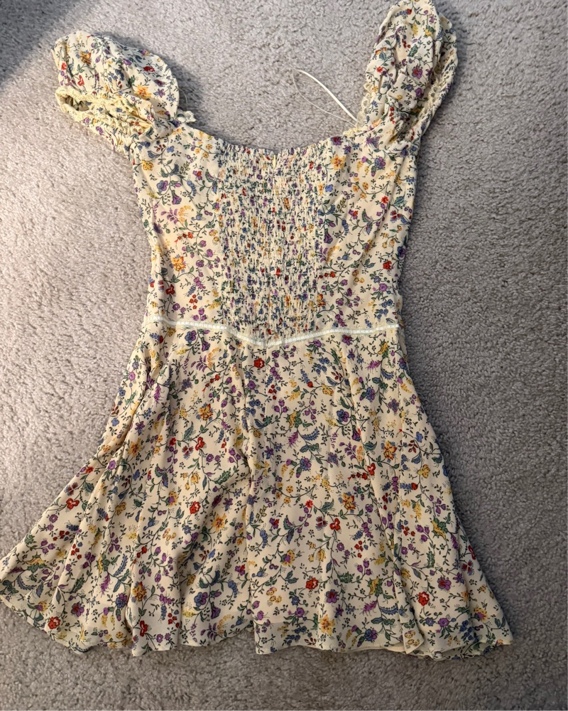 Reformation Ondine Dress size 4! The cutest dress, yellow mini dress with floral print. Haven’t worn this yet, dry clean only please!! Tags: reformation, reformation mini dress, Danielle Guizio, rat & boa, realisation par, Frankie’s bikinis, doen, sezane, country, cottage core, prairie, western