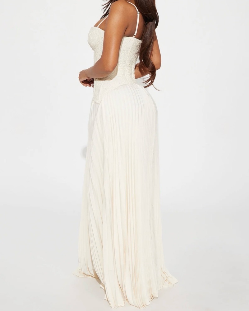 Danielle Frankel–inspired lace corset pleated maxi dress, perfect for brides!