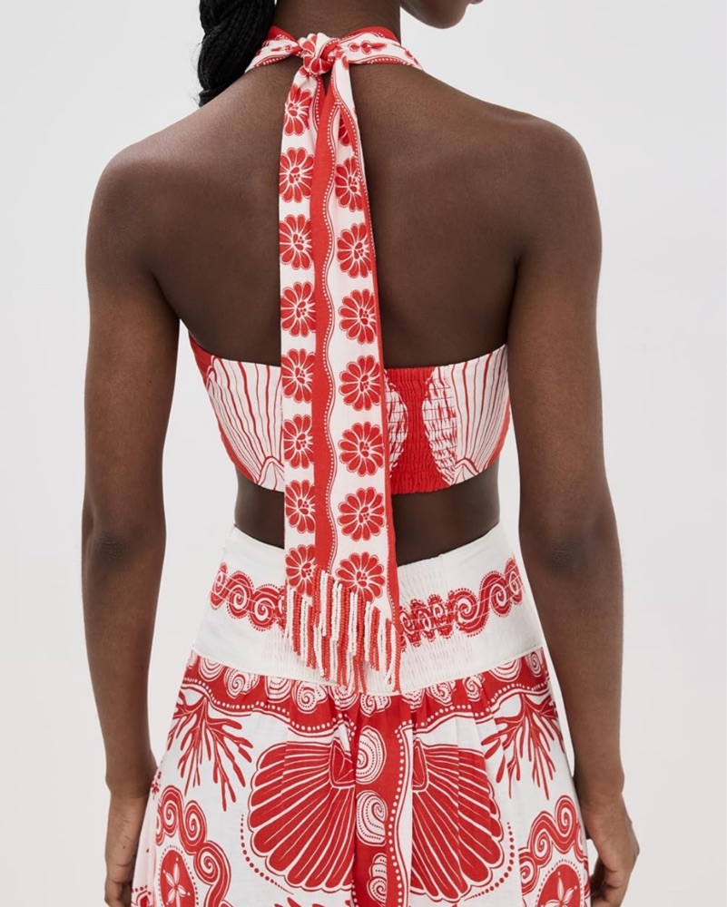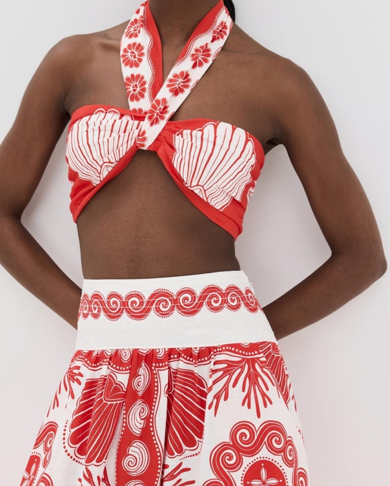 Ainika Shell Red Crop Top & Skirt by Farm Rio - Pickle