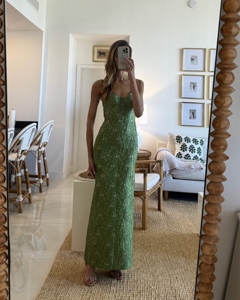 Brand new. Fits S/XS. You are wearing before me so please wear with care! Est measurements: I am 5’10” and wearing the dress in mirror pic! Tags: green formal dress, green black tie gown, green bridesmaid dress, cultmia dress