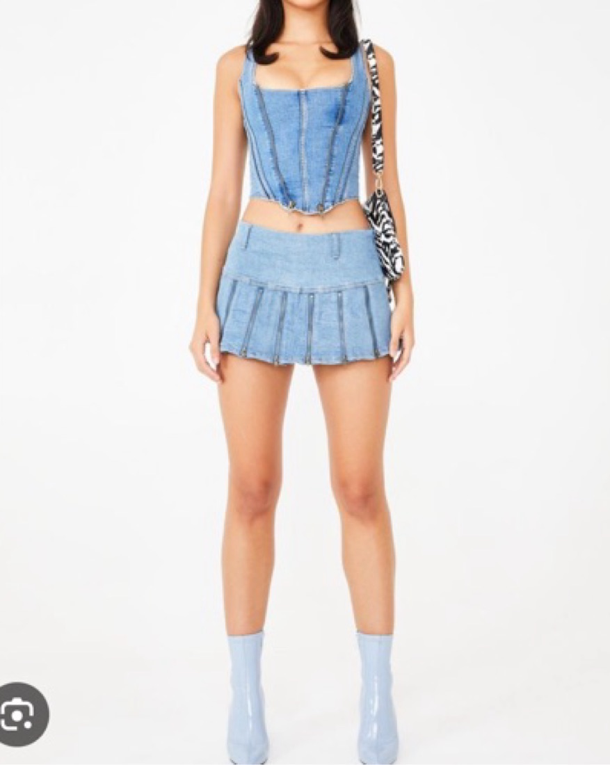Skirt and top both size medium. Love this set, perfect for a show or night out. Please be gentle with it.