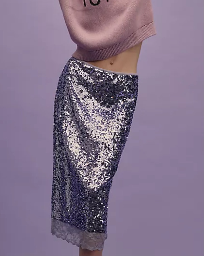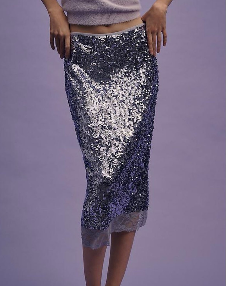Sparkling Purple Sequin Midi Skirt by Anthropologie - Pickle