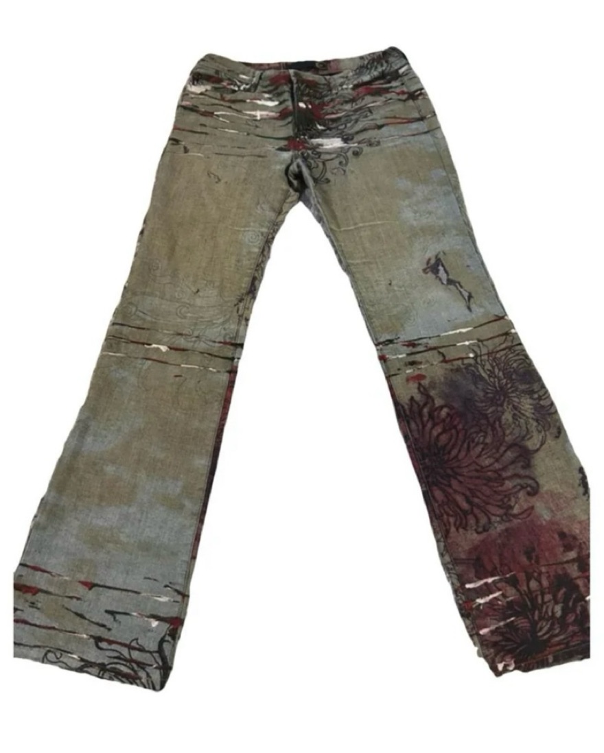 Roberto Cavalli vintage painted and patterned bootcut jeans. Perfect for a night out, dinner or event.
