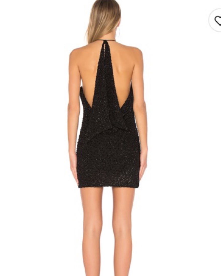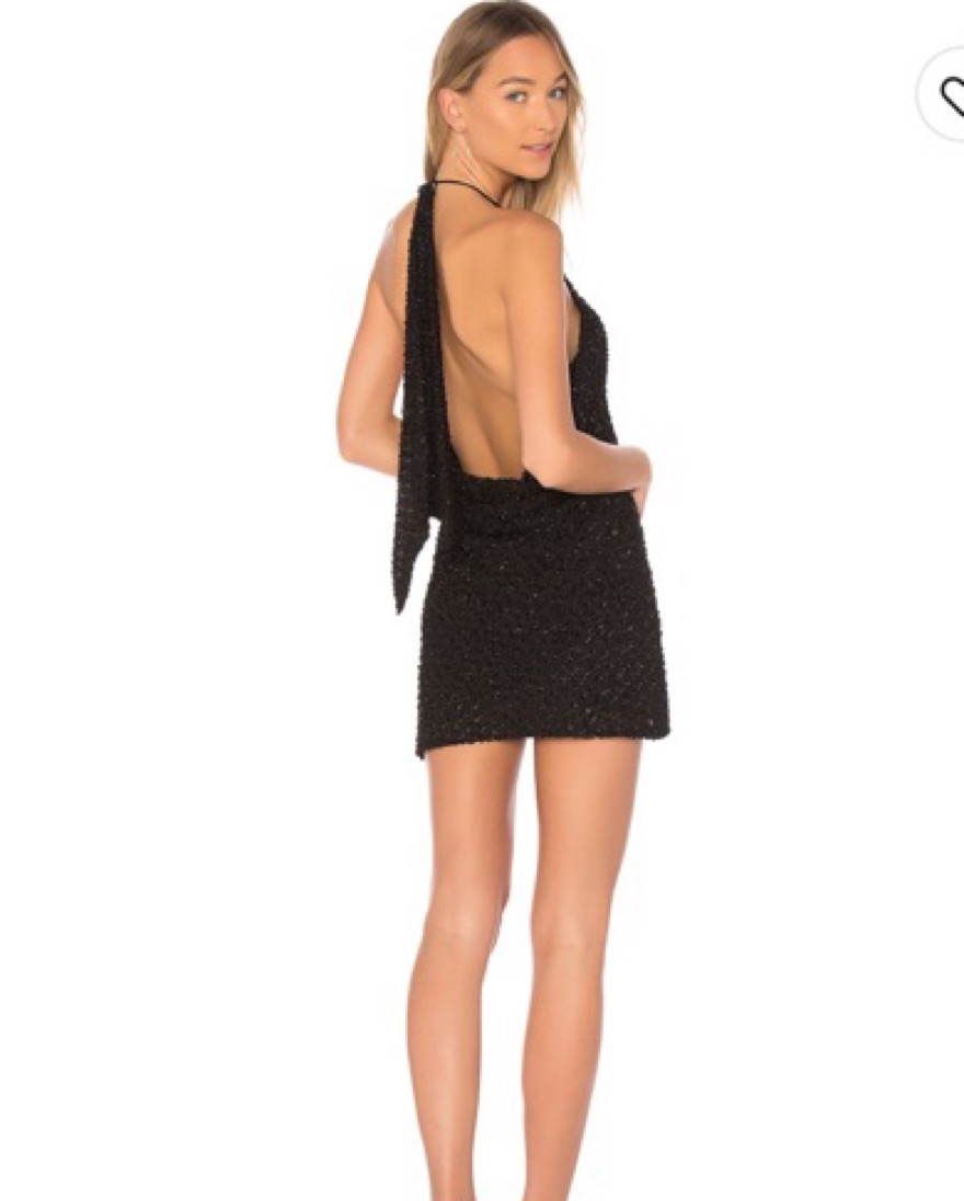 Low back, tie neck, sparkly fabric mini dress from revolve.