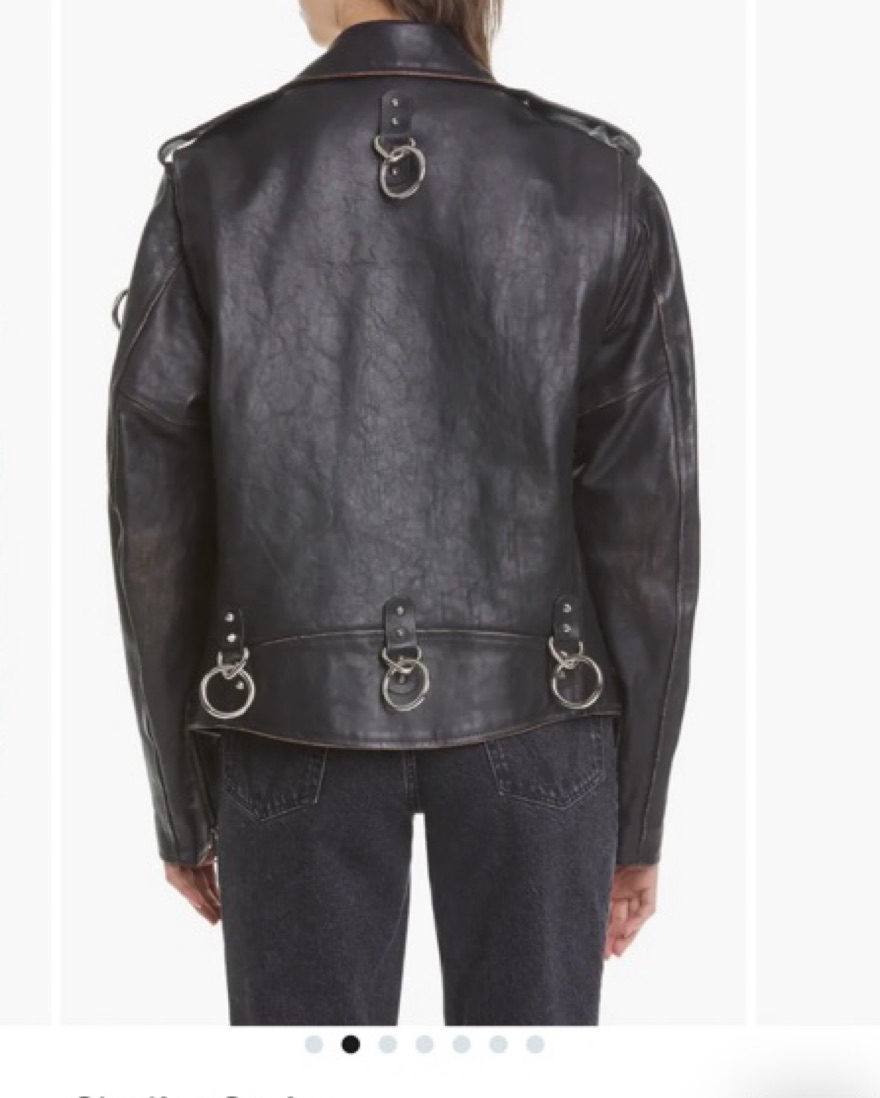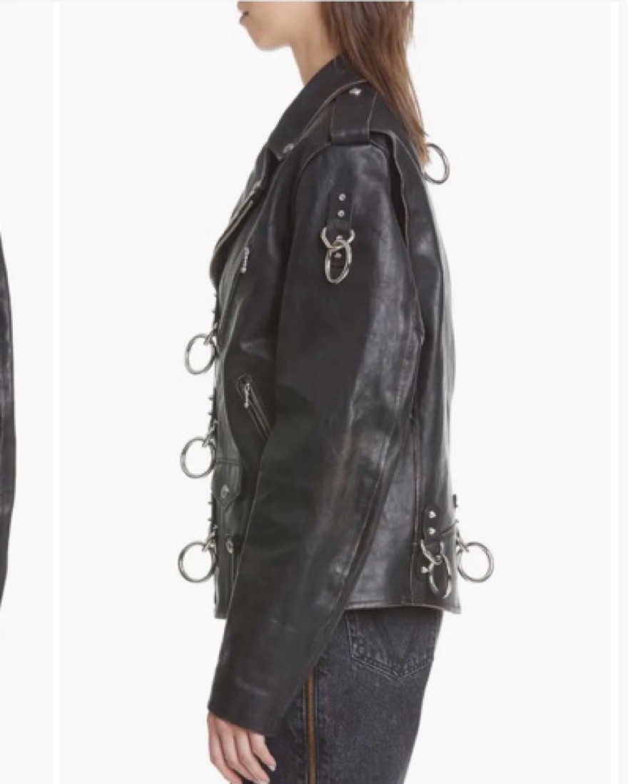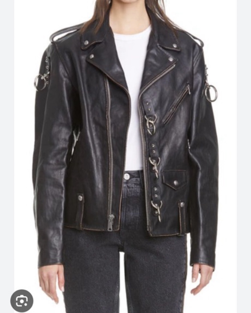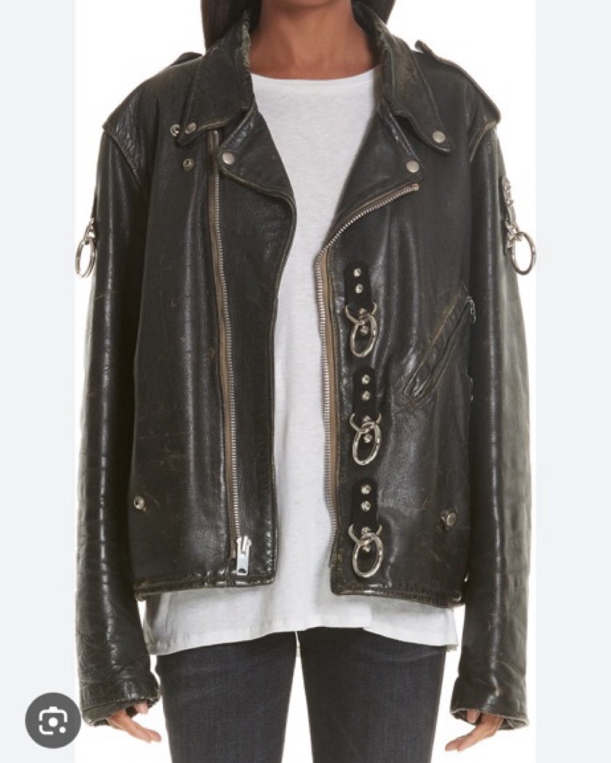 oversized R13 Ring Detail Refurbished Leather Moto Jacket. Fits a small - medium even large depending on sizing. This is a bit heavy due to leather and haedware
