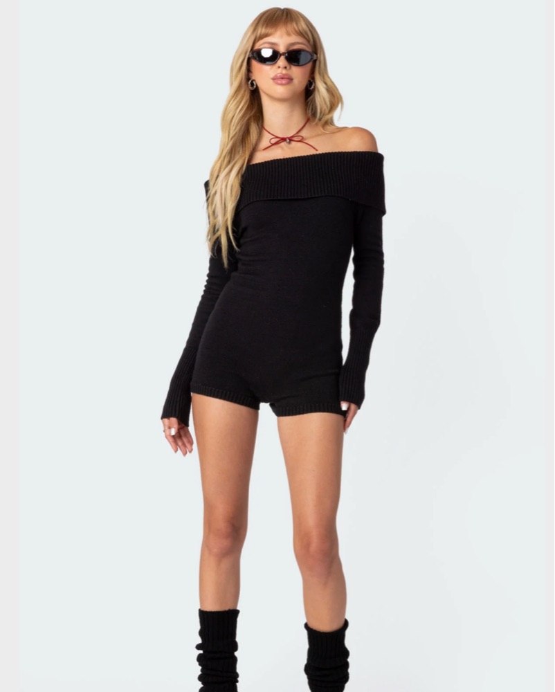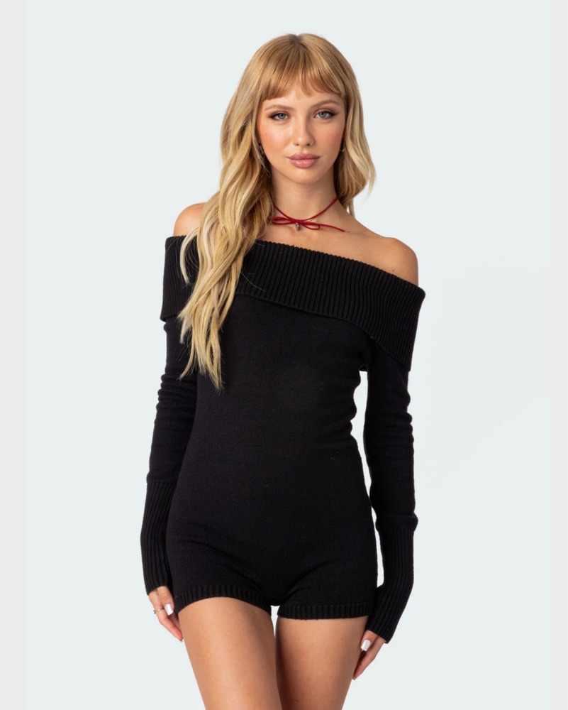 Off Shoulder Knitted Romper