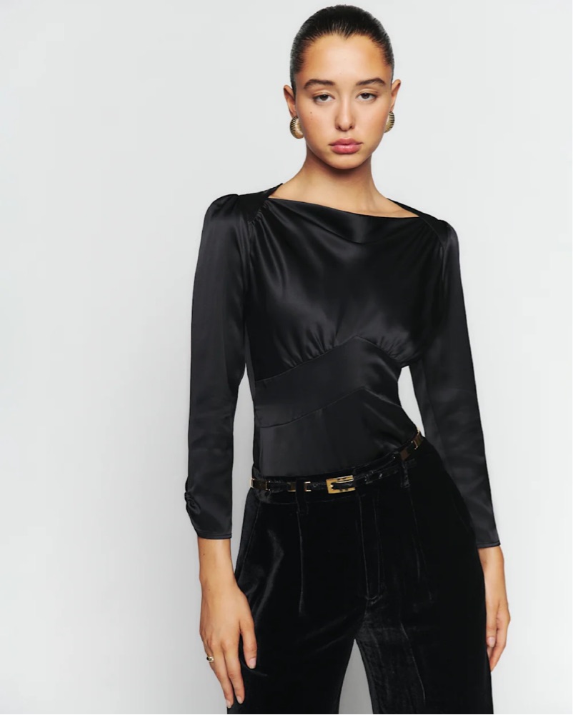 Reformation Black Jason Silk Top by Reformation - Pickle