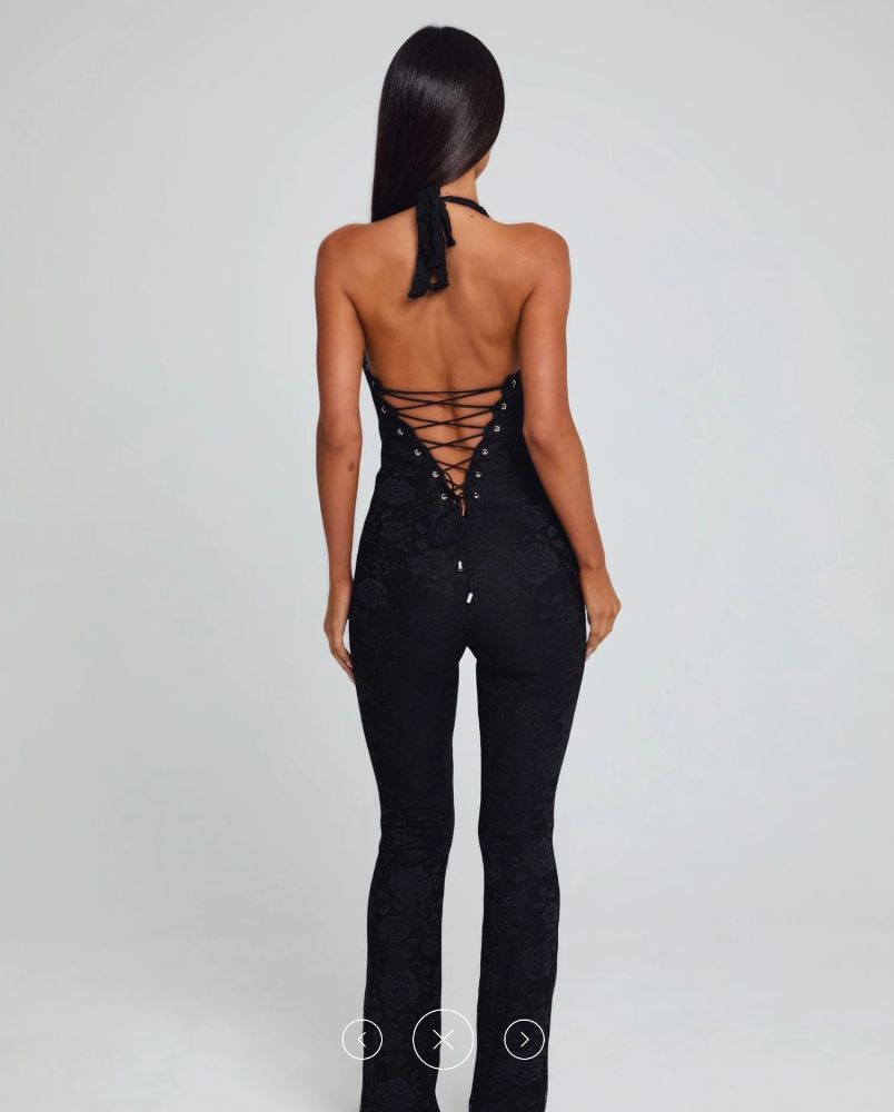Flattering mesh style jumpsuit that is adjustable in the back. Only worn once on my bachelorette trip. Super stretchy and comfortable.
