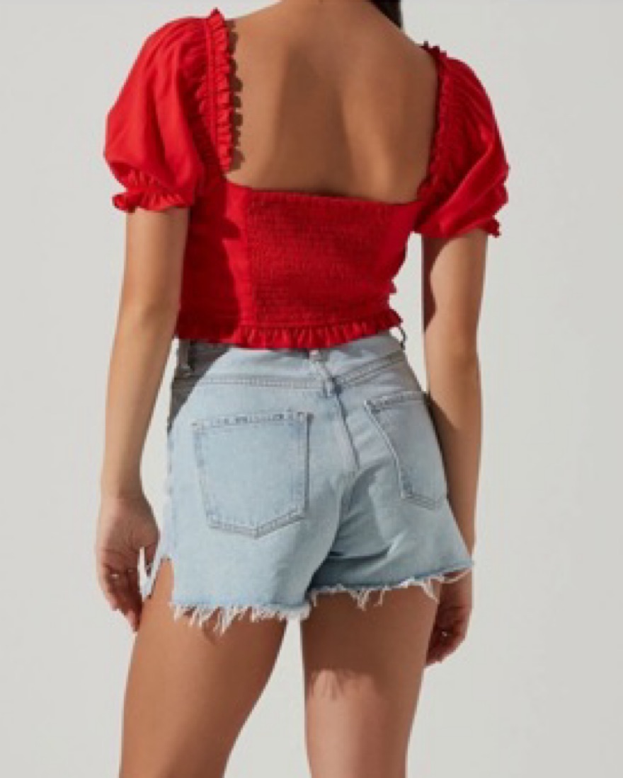 ASTR the Label Red Puff Sleeve Crop Top
