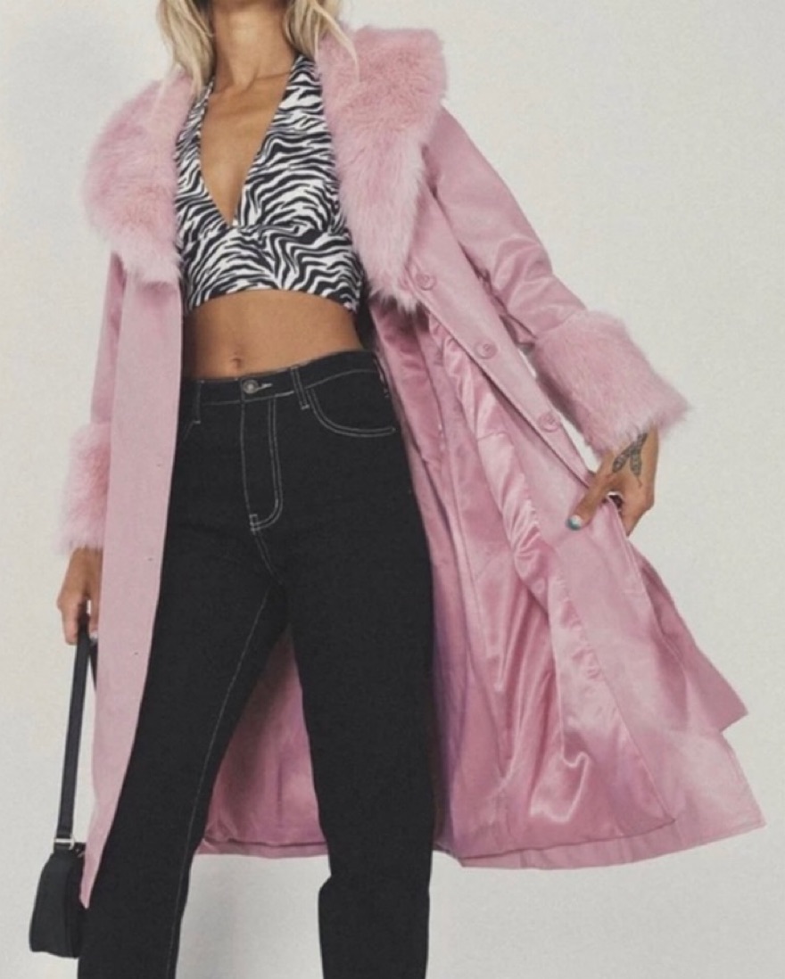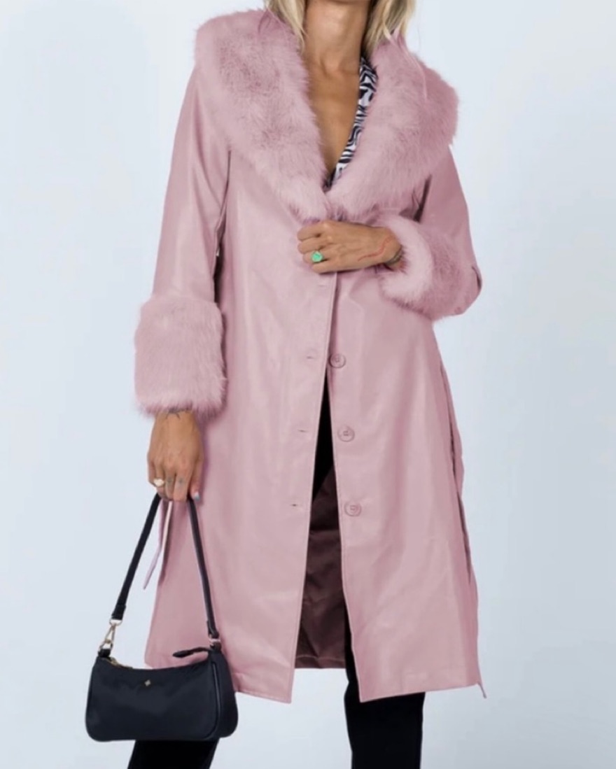 Pink Fur Frim Vegan Leather Coat Jacket by Princess Polly - Pickle
