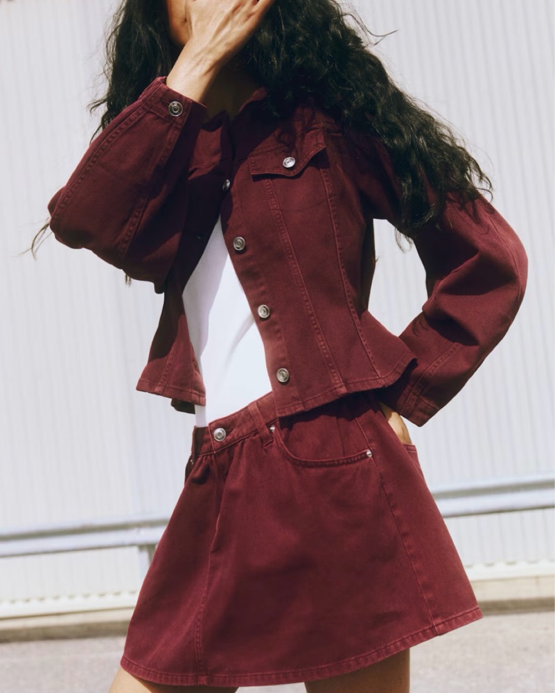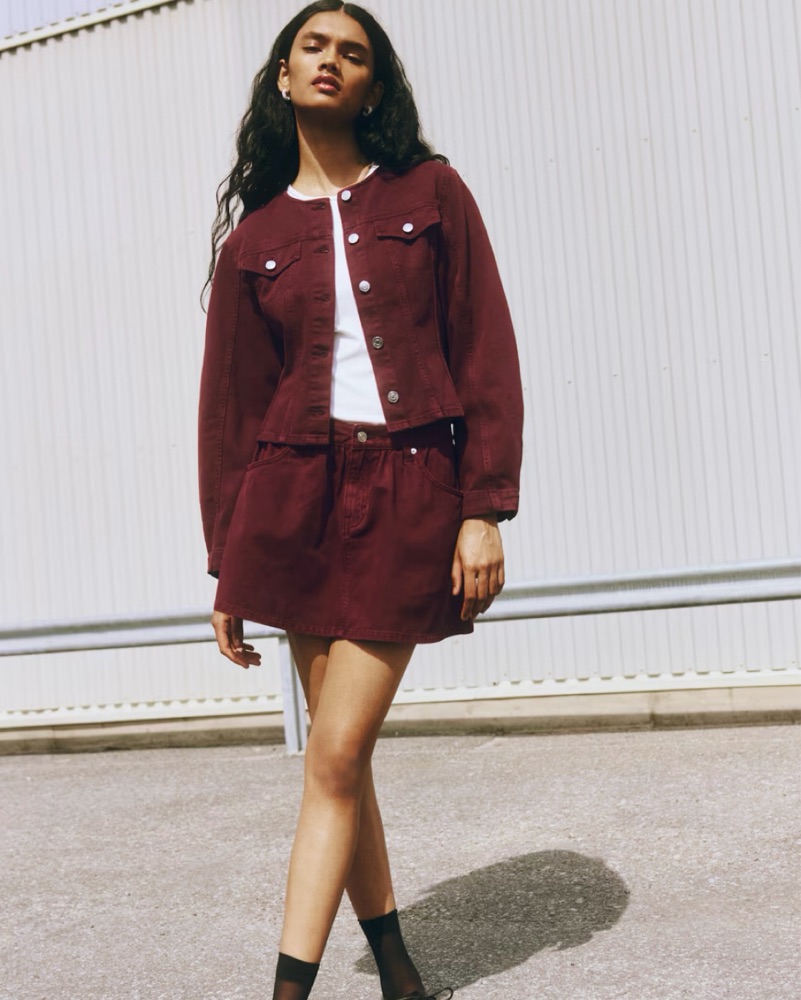 Rich Burgundy Denim Jacket and Skirt Set by H&M - Pickle