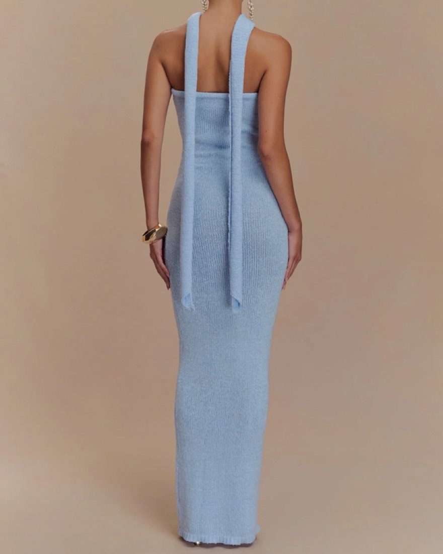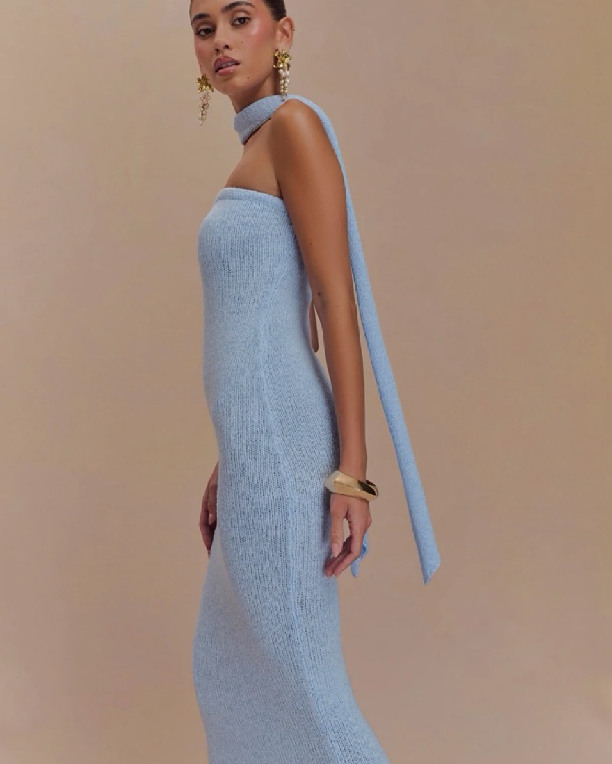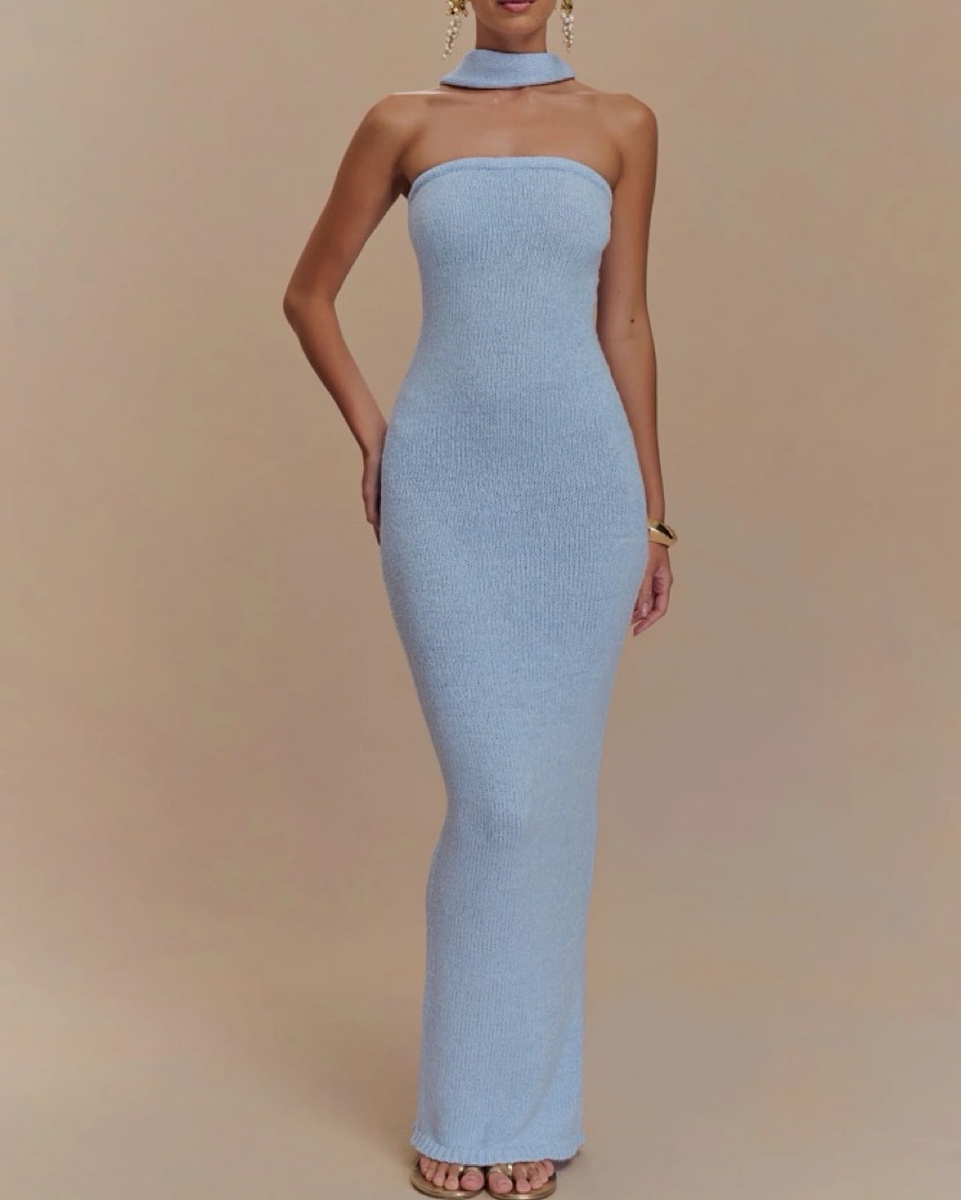 The ANDREA Strapless Knit Maxi Dress is the epitome of sleek sophistication. Designed with a fitted silhouette and an elastic top edge for a secure and flattering fit, this dress effortlessly contours the body. The maxi length adds elegance, while the mesh-lined removable scarf offers versatility