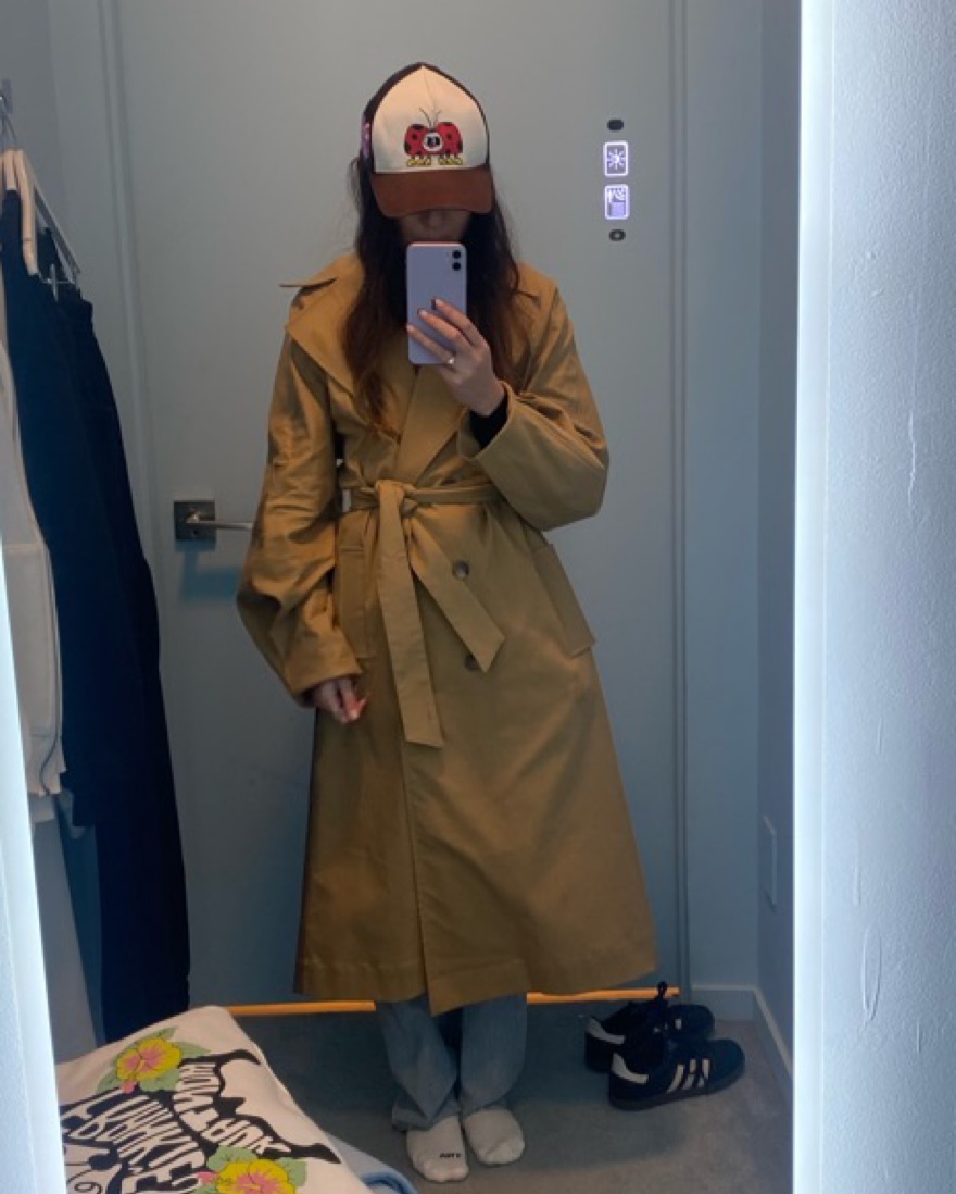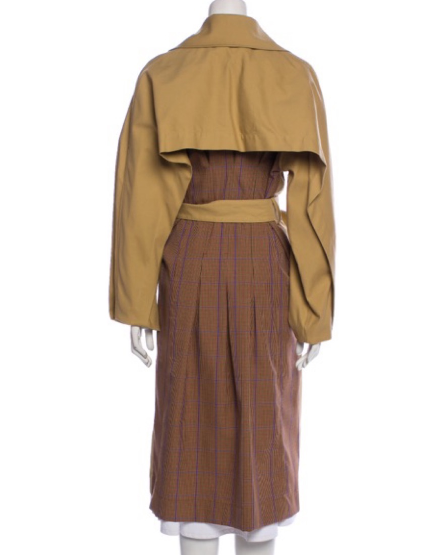Super unique trench coat with cute plaid contrast detail in the back. My go-to layer for spring and summer rainstorms in nyc. A timeless staple that can be worn to the office as well.