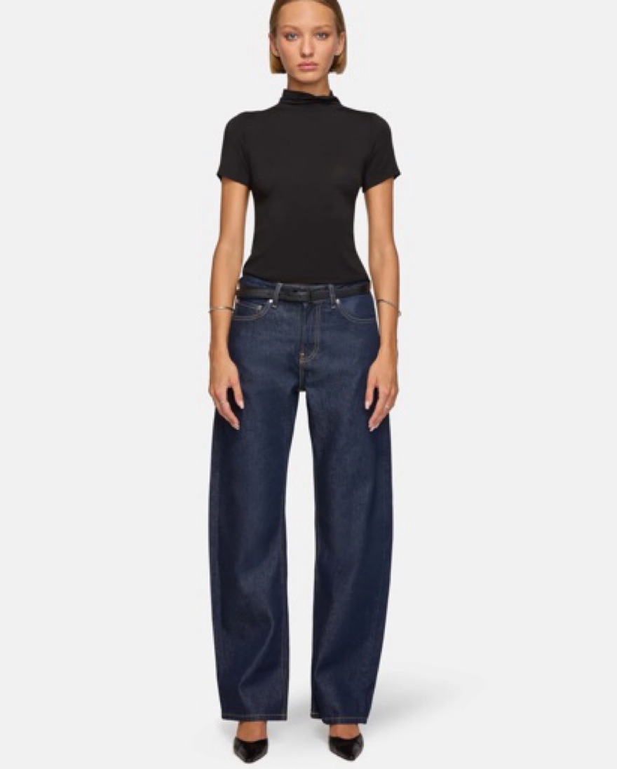 EB Denim Alida Jeans In Havana Night in size 25. Meant to fit mid rise with loose bow to the legs.