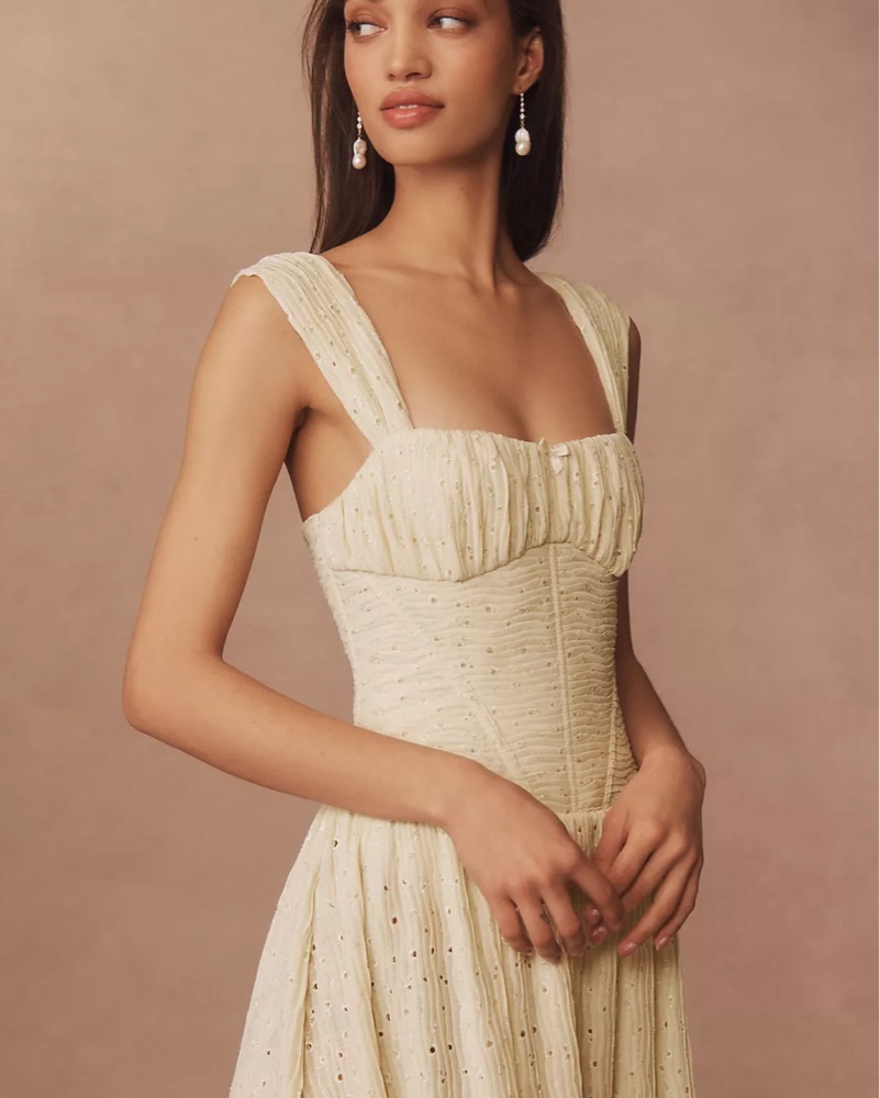 This For Love & Lemons Erika Dress channels all the romance of the Renaissance, featuring a sculpted bustier bodice, a ruched bust, and a flowing skirt.