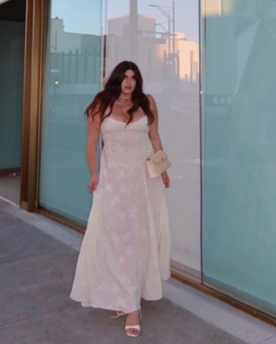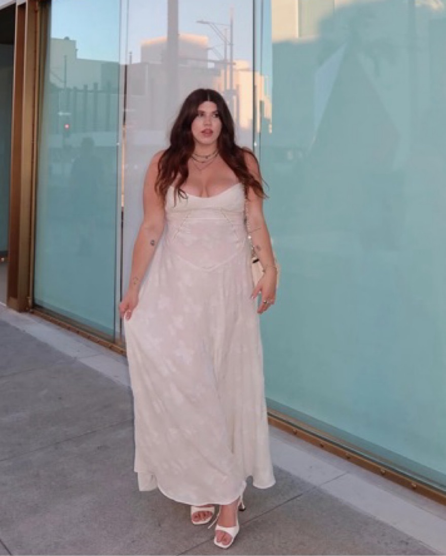 Cream slightly sheer lace print maxi dress
